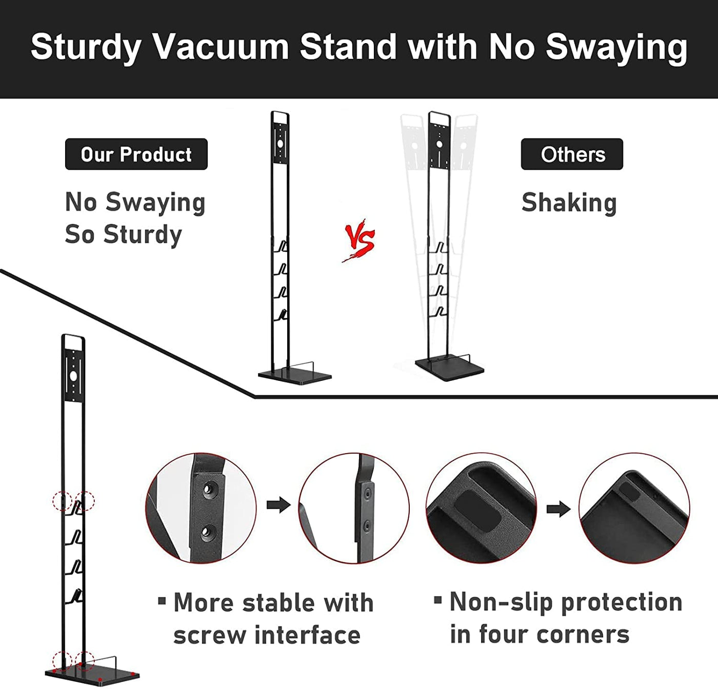Foho Portable And Stable Metal Vacuum Holders Compatible For Dyson Vacuum Cleaner And Accessories Product Information Assembled Size: 11.5'' L X 8.5'' W X 50'' H Weight : 8.8 Lb Bearable Weight: 10 Lb Materials: High Quality 100% Metal Bracket And Stable Stainless Steel Accessories Compatible For Dyson Handheld V6 V7 V8 V10 V11 Cordless Stick Vacuum Cleaner. Advantages -- Simple Installation -- No Drilling On Wall -- Space-Saving -- Strong Load-Bearing Capacity -- Movable Our Docking Station Can Store All Of Its Contents Perfectly And Fit In Tight Nooks And Crannies. Package Included -- 1 * Upper Holder; -- 1 * Lower Holder; -- 1 * Base; -- 13 * Screws (4 Long 9 Short); -- 4 * Nuts; -- 1 * Wrench -- 1 * Hex Wrench Notes Please Check If The Screws Are Assembled In The Correct Position. The Bottom And Middle Of The Bracket Are Secured With Short Screws. At The Top, Long Screws With Nuts And Grommets Are Used To Mount The Charger. After Installation, Check That All Parts Are Fixed. Make Sure The Product Is Used In A Stable Area.