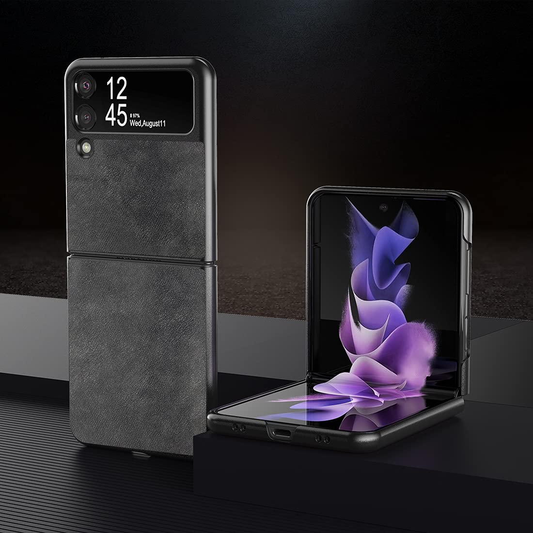 Q: What materials are used in the Foluu Galaxy Z Flip 3 5G case?A: The Foluu case is made from a combination of premium genuine leather and a hard PC shell. This provides durability while maintaining a sleek, lightweight design.