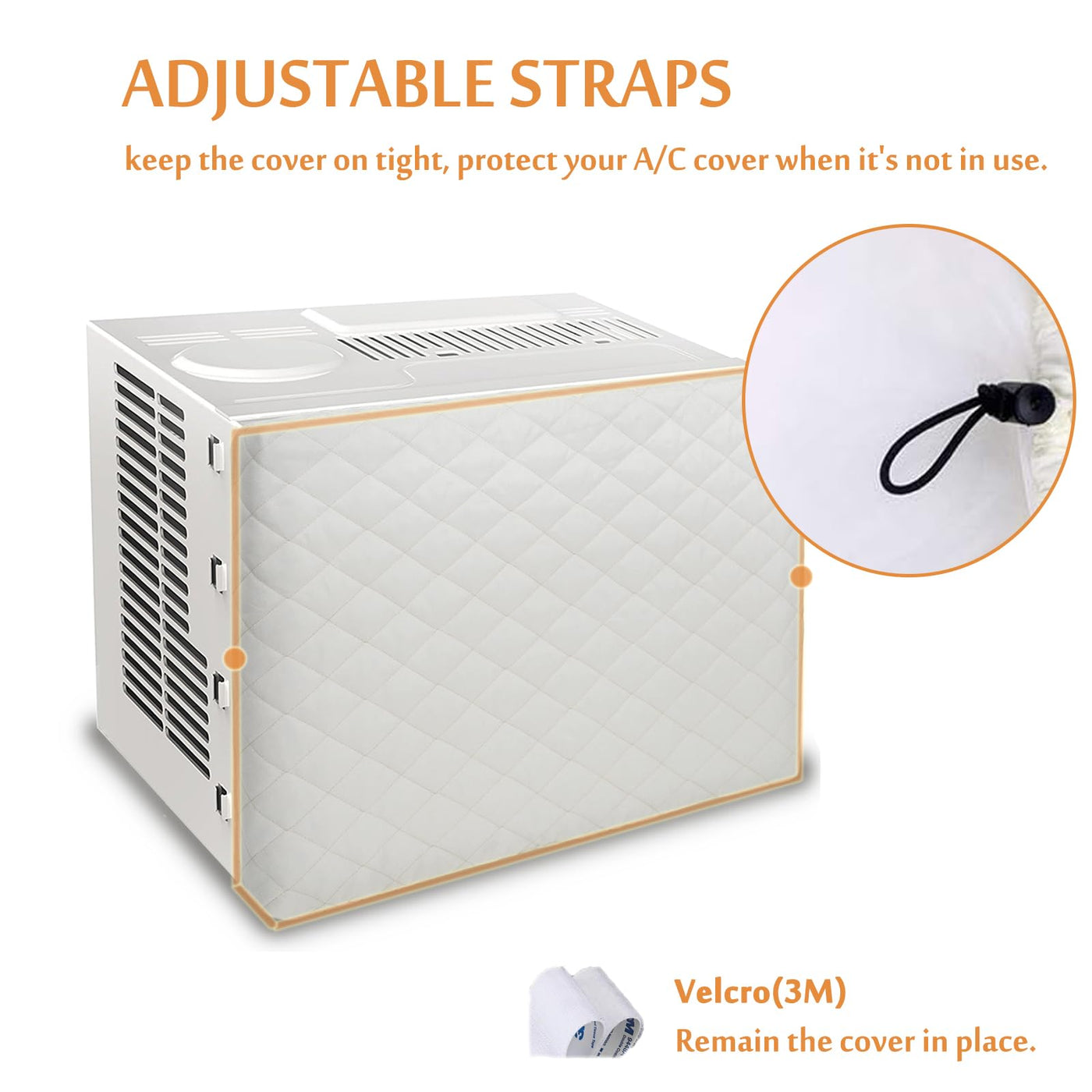 Foozet Reliable Indoor Window Air Conditioner Cover Eliminates Cold Drafts. Prolong A/C Life. Features: Cover The Inside Of The Window A/C Units Prevent Heat Loss In Winter Stop Cold Air Drafts From Entering Your Home Prevent Dust, Dirt From Collecting In Air Conditioner Prolonging The Life Of Your Air Conditioner When Not In Use Works With Any Brand Name Window Mounted Air Conditioner Breezy Installation With Elastic Straps. No Need Vinyl Tape. Specifications: 28''Long X 20''High X 3.5''Deep. Double Insulation Machine Washable Poly/Cotton Cover