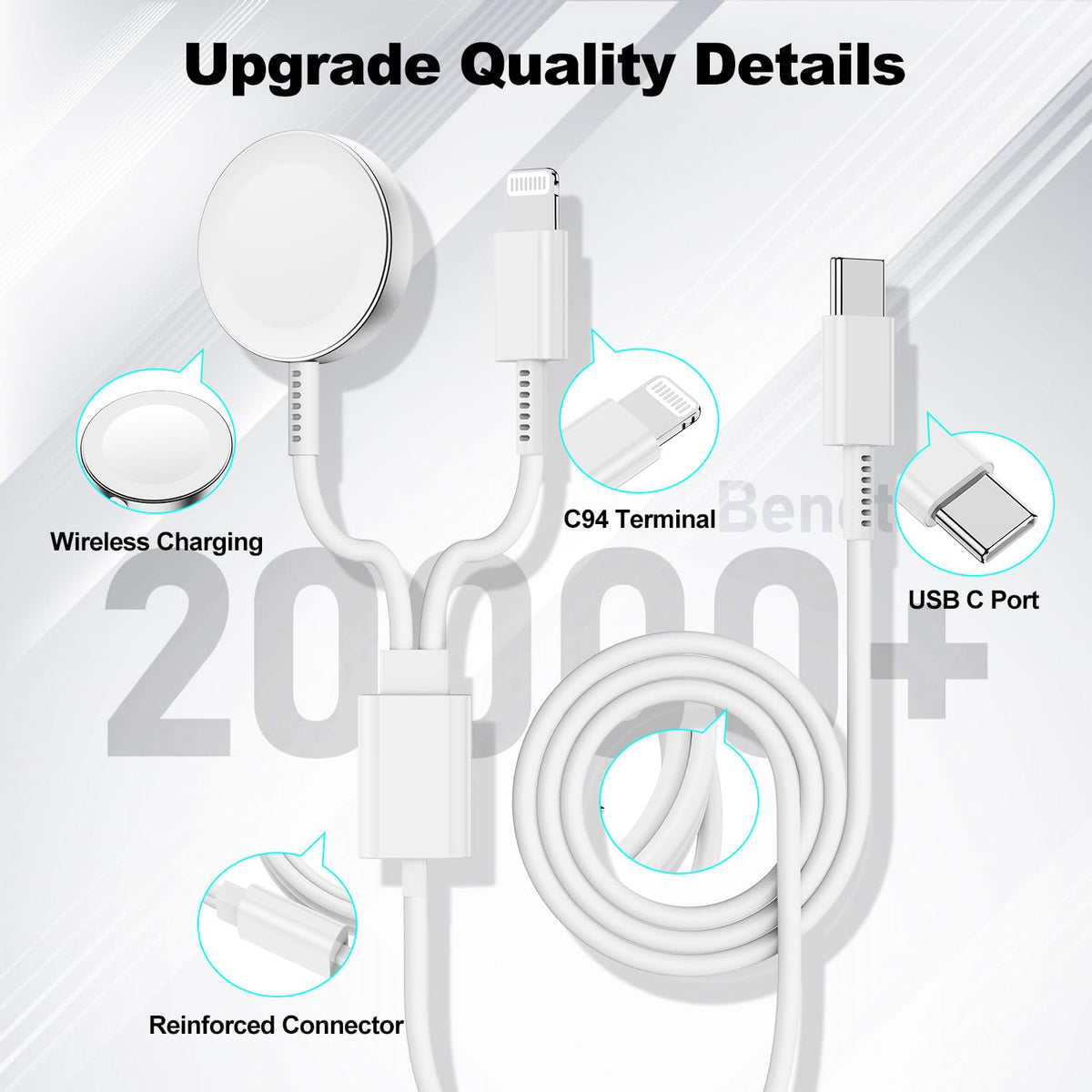 For Apple Watch Charger Cable Usb C, [Mfi Certified] Magnetic For Iwatch Charger Cable 6Ft Fast Charging For Watch Series Ultra 9 8 7 6 5 4 3 Se & Iphone 14/13, Type C 2-In-1 Cord For Iphone & Watch