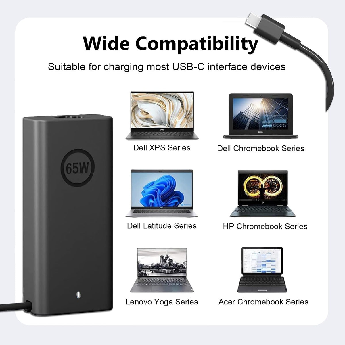 For Dell Laptop Charger Usb C 65W For Latitude 5420 5430 5440 5450 5320 5290 5520 5530 5540 5550 E5440 Chromebook 3100 3110 3400,Inspiron 16 7620 2In1 Xps 13 9350 9360 9310 La65Nm170 Ac Adapter