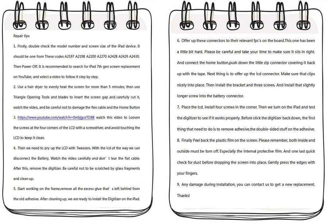 Tips: 2-Pack Touch Screen Digitizer Replacement For Ipad 7 2019/Ipad 8 2020. Come With Home Button Camera Bracket And Pre-Installed Adhesive. Model No. Should Be A2197 A2198 A2200, A2270 A2428 A2429 A2430. Package Contents: 2 * Touch Screen Digitizer (Not Include Lcd) Money Back Guarantee Service: For A Month Money Back Guarantee,Contact With Us With Any Problem,We Will Give You Best Solution.