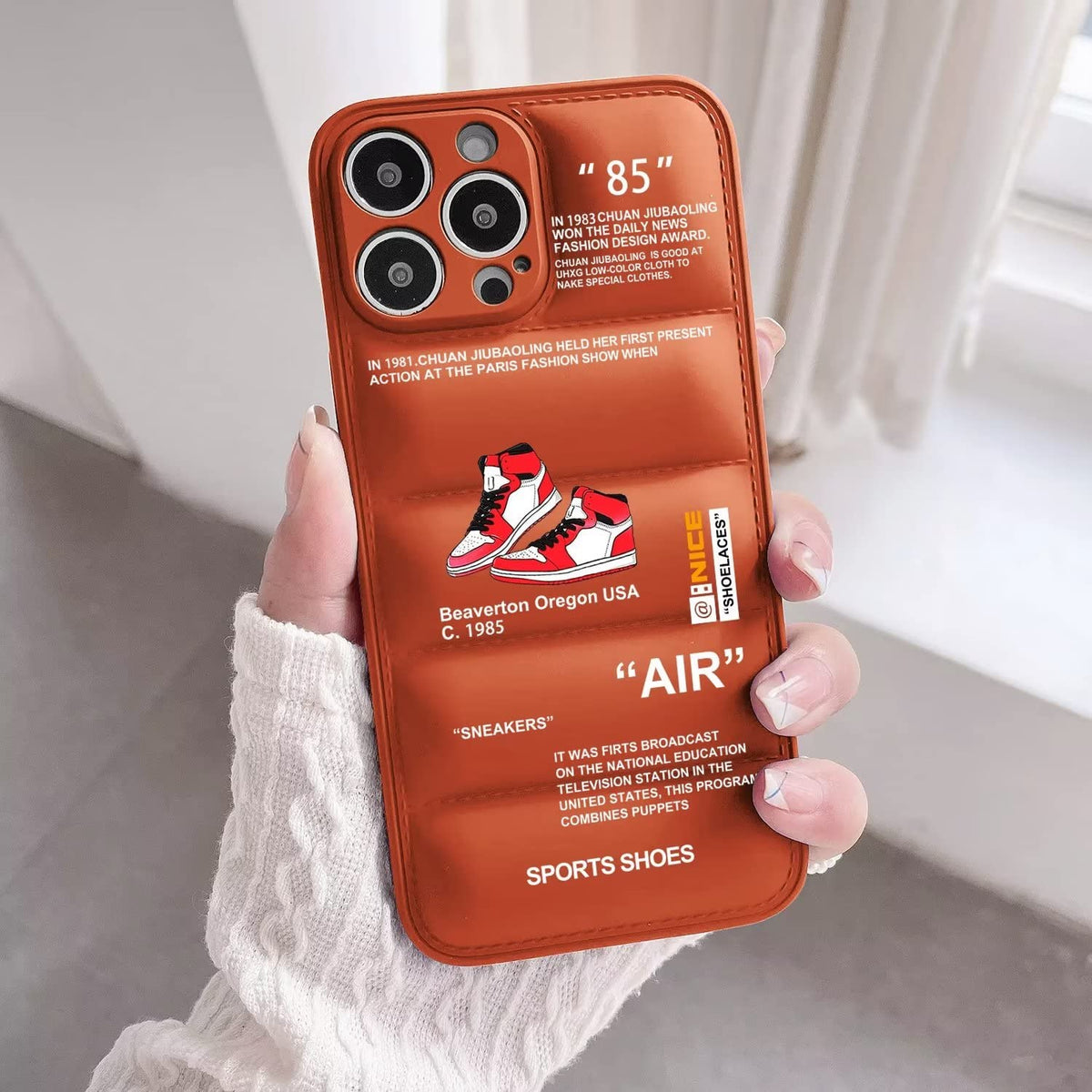 For Iphone Puffy Case,Cool Sports Shoes Brand Phone Puffer Case Puffy Cove, Cool Red Sneakers Ins White Or Black Label Pattern Soft Cover-Ultra Thin Soft Silicone Shockproof Cover For Iphone 11 12 13 14 Pro Max Plus Case