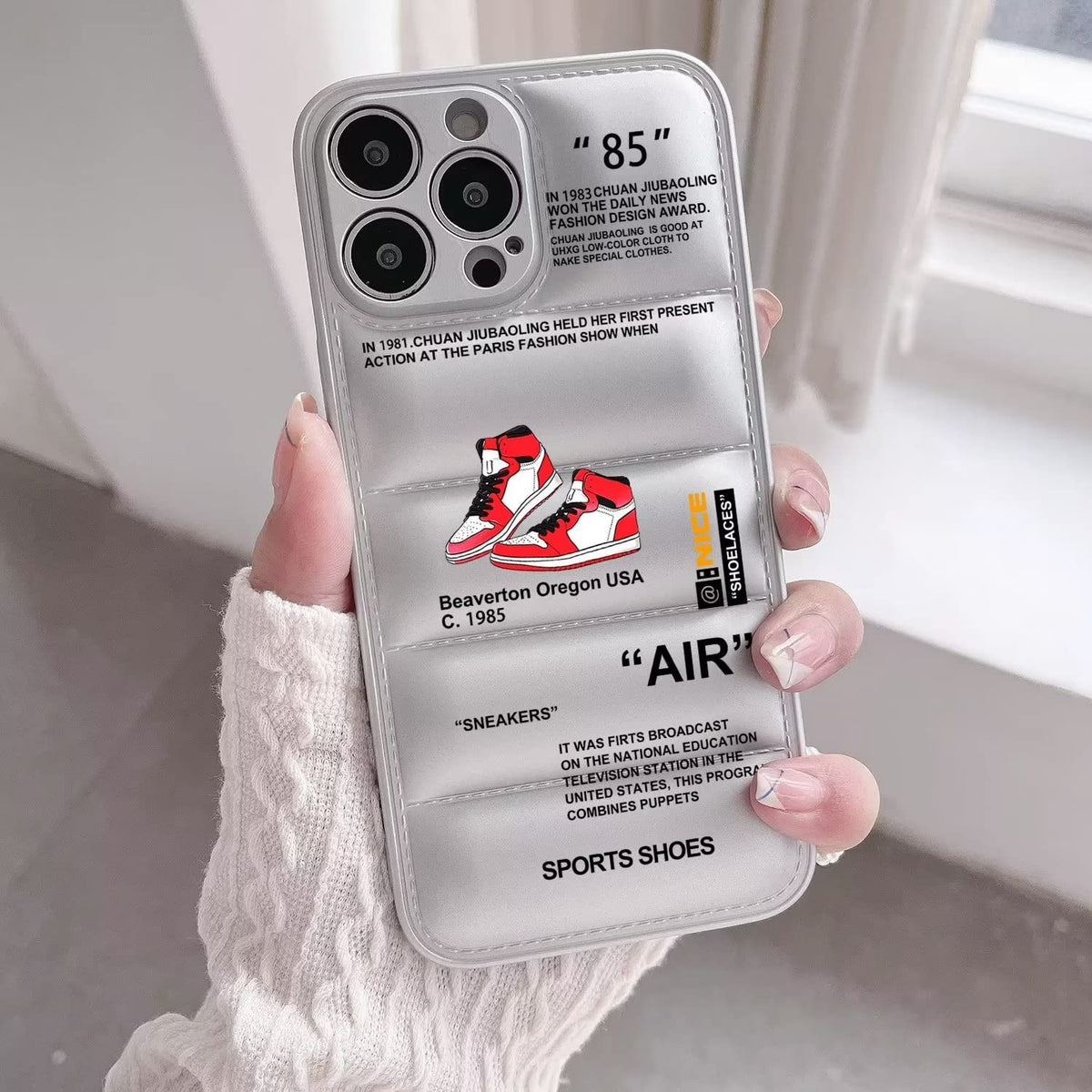 For Iphone Puffy Case,Cool Sports Shoes Brand Phone Puffer Case Puffy Cove, Cool Red Sneakers Ins White Or Black Label Pattern Soft Cover-Ultra Thin Soft Silicone Shockproof Cover For Iphone 11 12 13 14 Pro Max Plus Case
