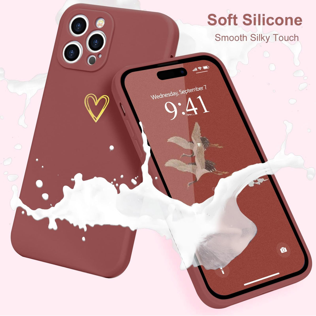For Iphone 14 Pro Max Case Cute Heart Pattern Soft Shockproof Slim Protective Silicone Phone Case Cover For Women Girls, Red