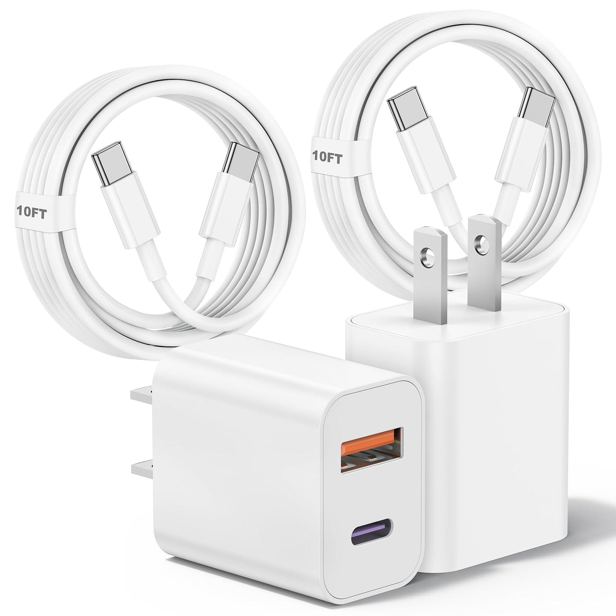 For Iphone 15 Fast Charger,[Apple Mfi Certified] 2Pack Dual Port 20W Pd Power Usb C Wall Charger Adapter With 10Ft Long Usb C Fast Charging Cable For Iphone 15/15 Pro/15 Pro Max/15 Plus, Ipad And More