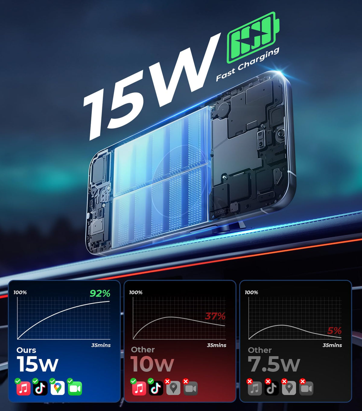 Aredan For Magsafe Car Mount 15W Wireless Charger, 2-In-1 Dashboard And Air Vent Phone Holder, Strong Adhesive, Heat Resistant, 360 Rotation, Magnetic Phone Holders For Your Car, Compatible With Iphone, Samsung, Car Essentials, Accessories For Men Women,
