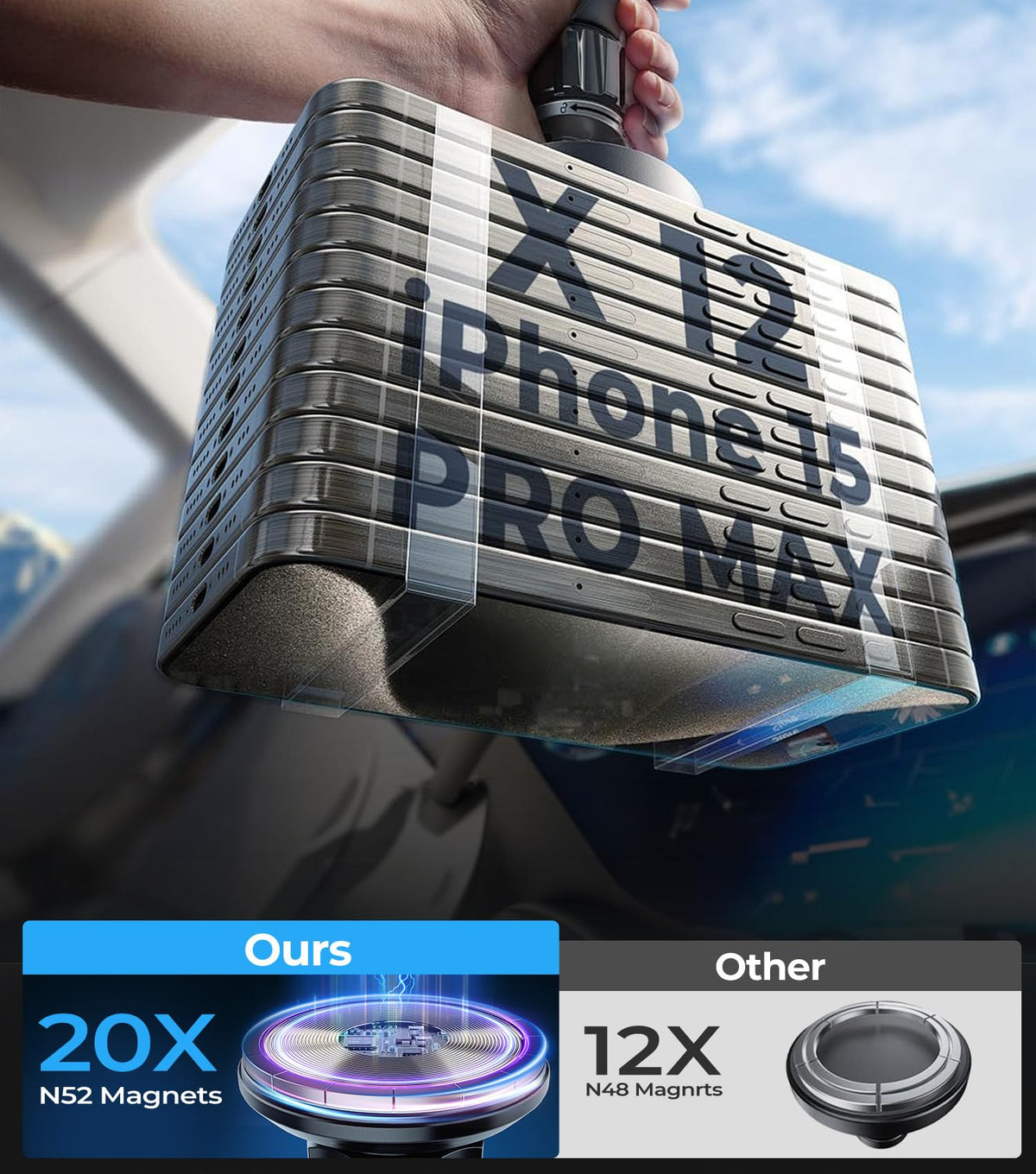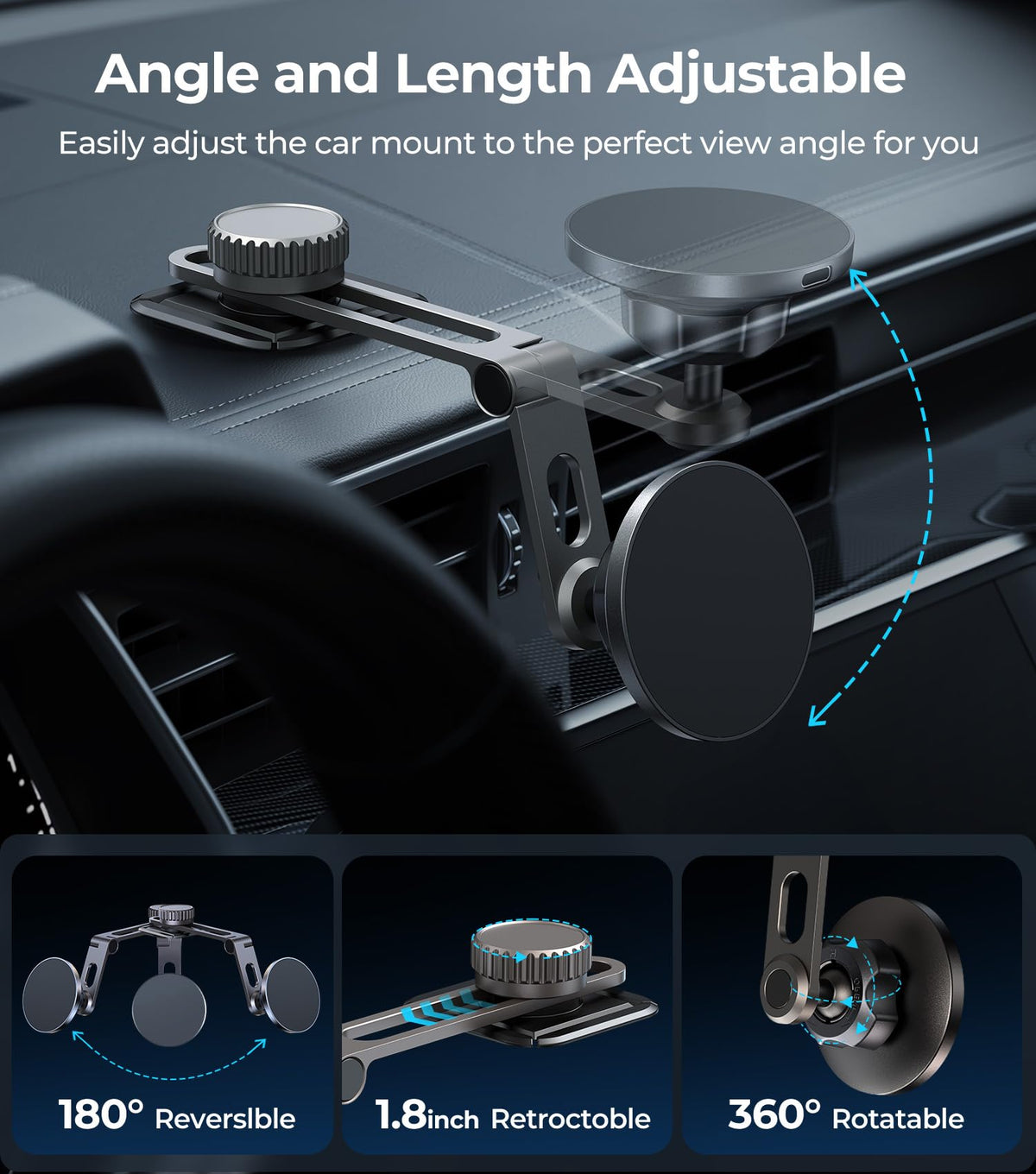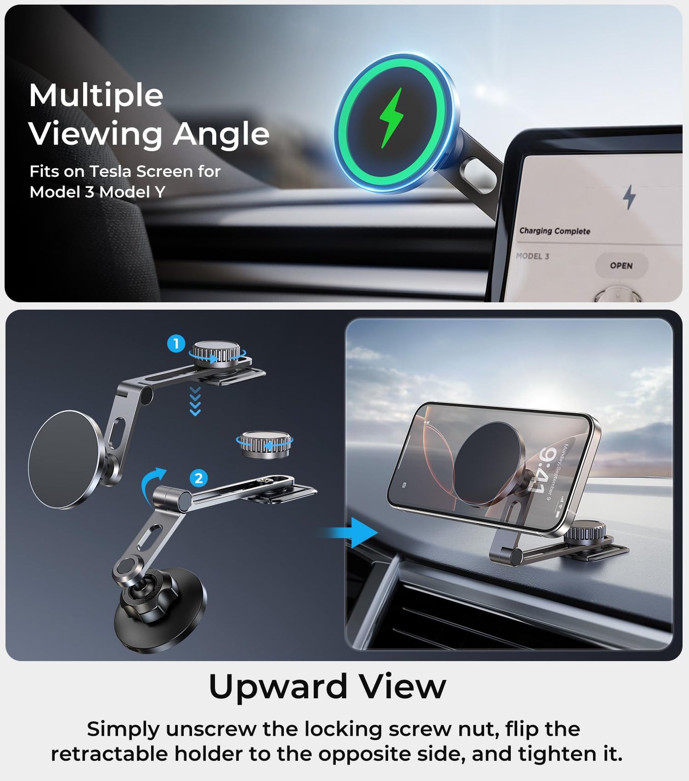 For Magsafe Car Mount Wireless Charger, Foldable Magnetic Phone Holder, Multiple Installation Options For Universal Dashboard &