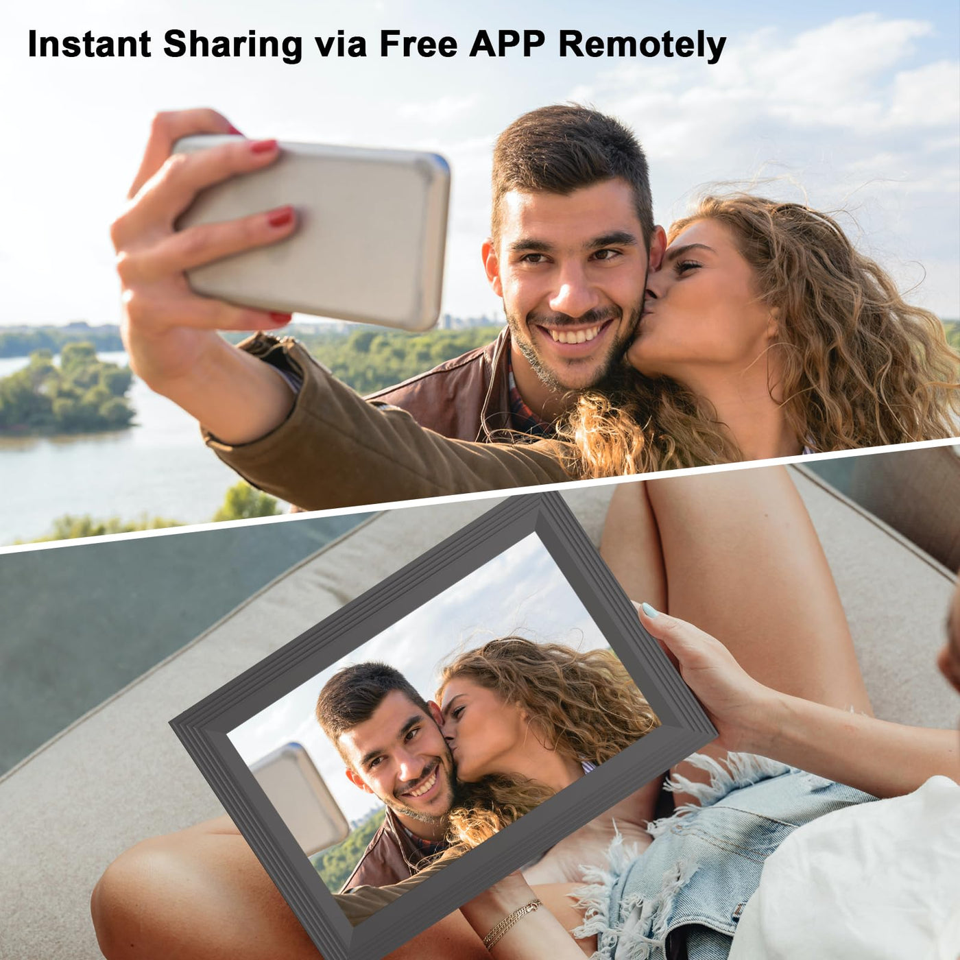 Wifi Digital Picture Frame, Great Gifts,Wifi Digital Photo Frame Electronic, Ips Touch Screen Hd Display, 16 Gb Storage, Auto-Rotate, Wall-Mountable, Easy Setup To Share Photo And Video By Free Appfeatures:1. Premium Gift-Ready Box Its Perfect Gifts For Mom, Dad, Grandparents, Parents And Family. 2. Instantly Remotely Share Photos And Video Via App Or Web App At Anywhere Anytimeafter Smart Wifi Picture Frame Is Connected To 2.4Ghz Wi-Fi Or Hidden Wifi, It Enables Instant Sharing With Unlimited Cloud Storage At Lifetime Zero Cost. Send Max To 50 Photos At A Time Via App Or 500 Photos Via Web App. Send Small Videos (Max. 30 Seconds). Send Instant Or Timed Greeting Cards To The Frame. 3. Touch Screen Hd Display 10.1 Inch Ips Hd Touch Screen With 1280*800 High Resolution (Aspect Ratio: 16:10) Displays Clear And Vivid Photo Slideshow And Video At Full Angle. 5 Point Touch Panel To Easily Setup The Frame And Manage Photos. 4. Large Memory Built-In 16Gb Memory To Store Over 44,000 Photo, Support To Play Photos Directly From A Max 16Gb Micro-Sd Card And Usb Drive To Extend Storage, Can Import, Export, Backup Photos In Batch Via Sd Card. Supports Picture Format By Jpg/Jpeg/Bmp/Png And Video Format By Mp4. 5. Auto Rotation& Wall-Mountable With A Removable Stand And Wall-Mounted Hole On The Back, You Can Place The Smart Frame On Table Or Hang It On Wall In Both Landscape And Portrait Mode, Automatically Rotate The Photo To View The Electric Photo Frame Slideshow Perfectly, Its A Perfect Decoration At Home. Using Secure Device Grid (Sdg) For Safe End To End Encrypted Communication, Photos Are Saved Locally On The Frame. 6. Worry-Free Quality & Warranty Each Frame Has Been Subjected To 200 Hours Of Machine Aging Test, Ensure That All The Digital Picture Frames Run Well Before Delivery. We Provide Lifetime Support, 1-Year Warranty, 24-Hour After-Sale Service.
