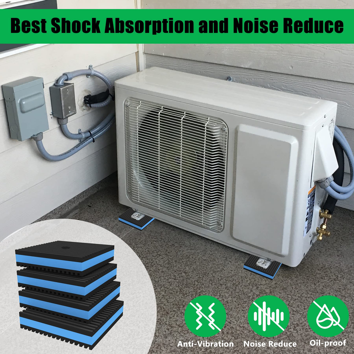 Q: Can these anti vibration pads be used for air conditioners and HVAC systems?A: Yes, these anti vibration pads are designed for use with air conditioners, HVAC systems, and other heavy machinery that generates vibrations, effectively reducing noise and stabilizing equipment.