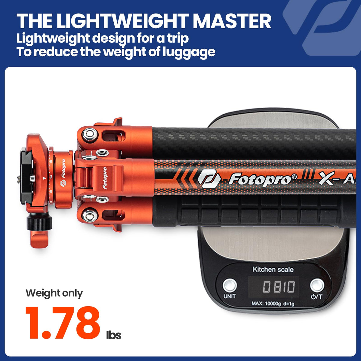 Q: How portable is the Fotopro X-Aircross 3 Lite tripod for travel?A: Weighing only 1.7lbs (0.81kg) and with a folding height of 15.74 inches, the Fotopro X-Aircross 3 Lite is designed for easy portability, fitting comfortably in your travel bag.