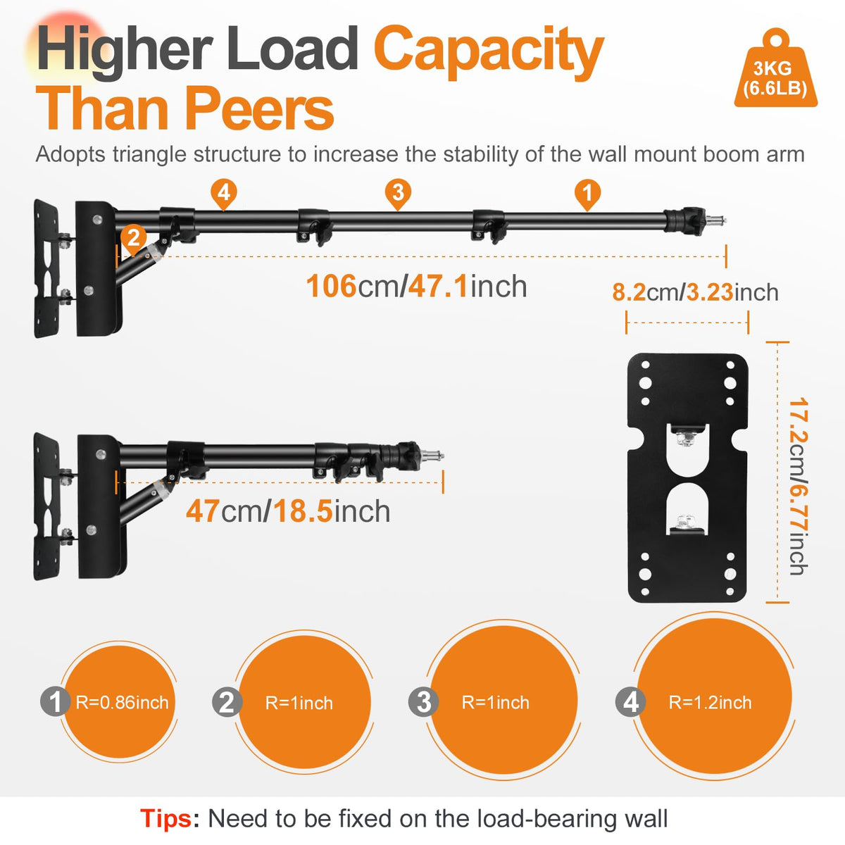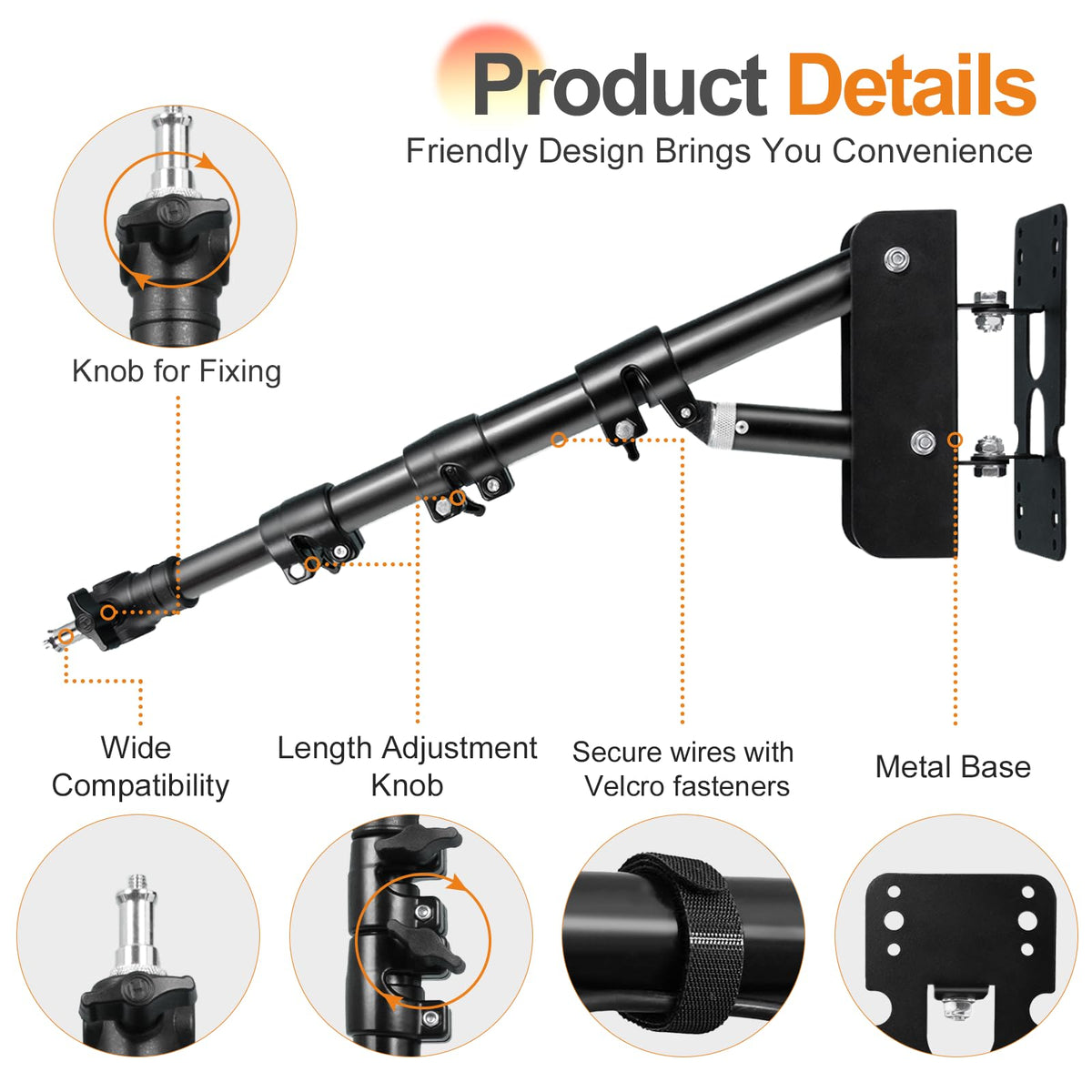 Fotoumgl Ring Light Wall Mount 41.7In/106Cm, Adjustable Wall Mount Triangle Boom Arm With 180 Flexible Rotation, For Photograph