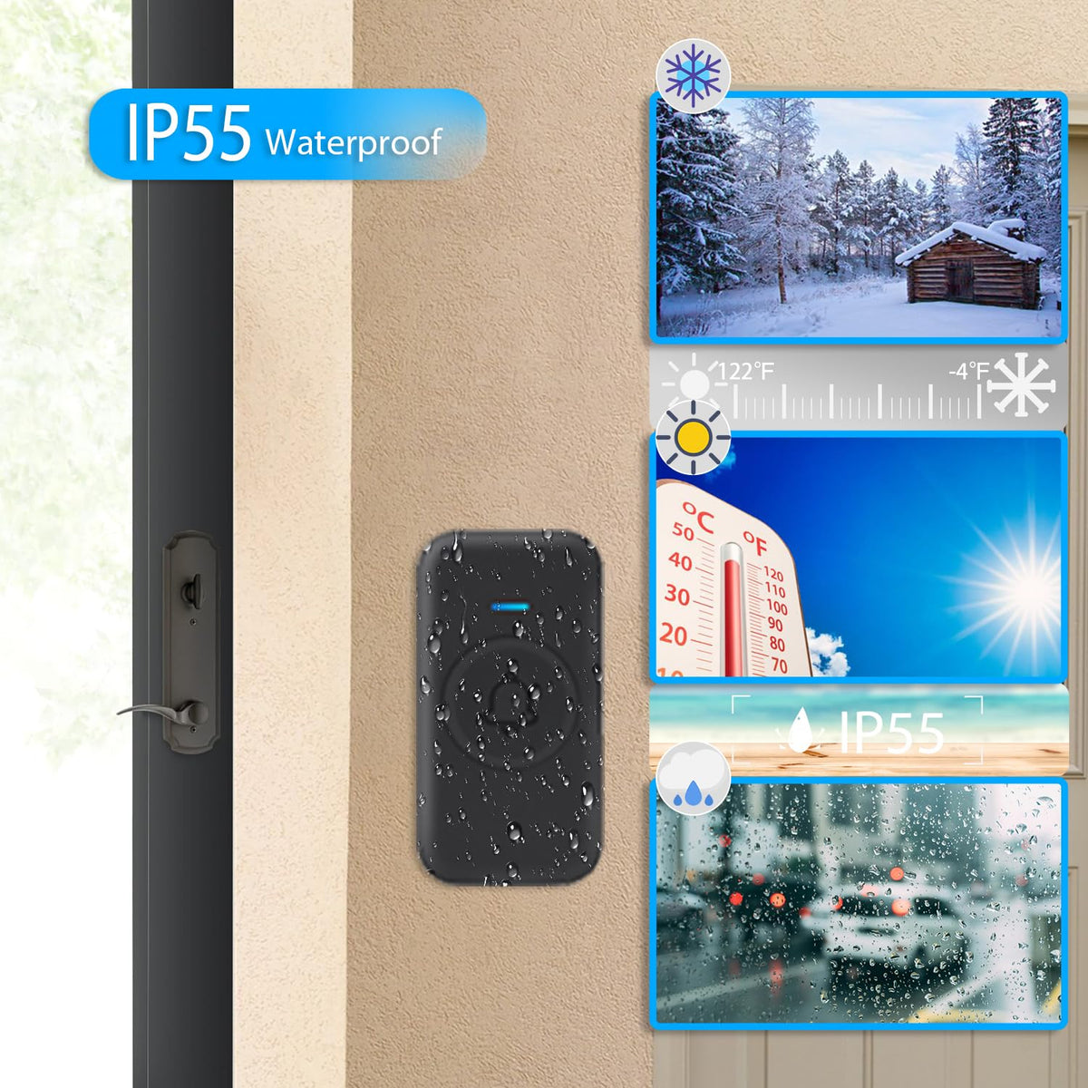 Q: Is the doorbell waterproof and suitable for outdoor use?A: Yes, the FOVKSUC Wireless Doorbell is designed with an IP55 waterproof button, making it durable and reliable for outdoor use, even in heavy rain or adverse weather conditions.