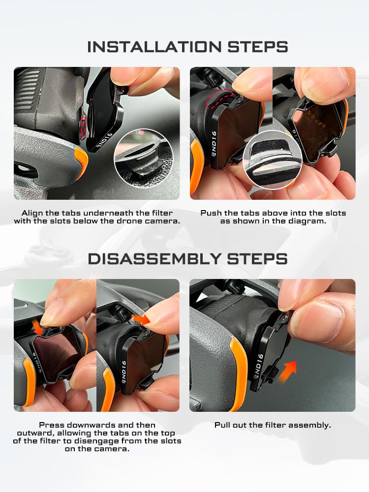 Q: How do I install and remove the Freewell Polarizer PL Filter?A: The PL filter is designed for quick and easy installation on the Avata 2 drone. Simply align the filter with the camera lens and gently twist until it secures in place. To remove, twist it in the opposite direction. This seamless process ensures you can efficiently switch filters as needed.