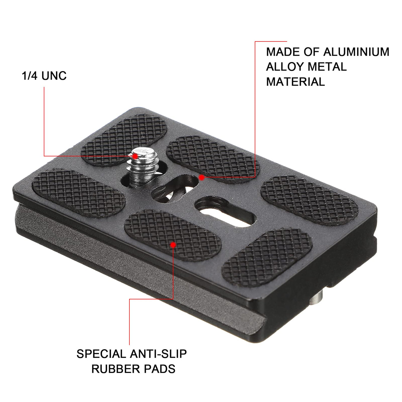 Features: The Universal Quick Release Plate Can Be Fixed To The Camera Base, Which Are Convenient To Use, Help You Save Your Time And Energy. The Tripod Adapter Mount Has Special Anti-Slip Rubber Pads, Which Can Enhance The Grip Between Each Plate And The Mounted Gear, And Protect The Gear From Any Damage Due To Mounting. Adopting Aluminum Alloy Material, This Quick Release Plate Is Portable, Easy To Carry.