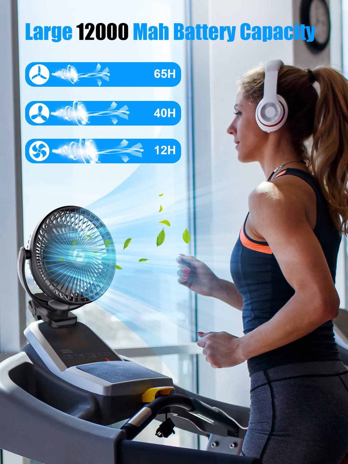 Frizcol 12000Mah 8 Inch Portable Clip On Fan,Battery Operated Camping Fan With Lights And Remote, Usb Fan Small Desk Fan Personal Quiet Fan For Office Stroller Bedroom And Camping