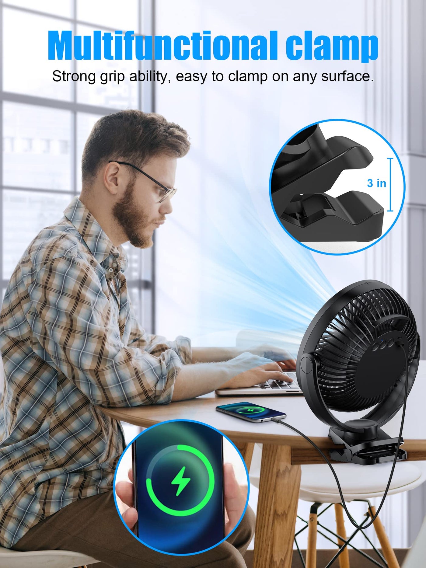 Q: What are the speed settings available on this fan?A: This portable fan offers 3 adjustable speed settings, allowing you to customize the airflow to suit your comfort level, whether you're at home, in the office, or outdoors.