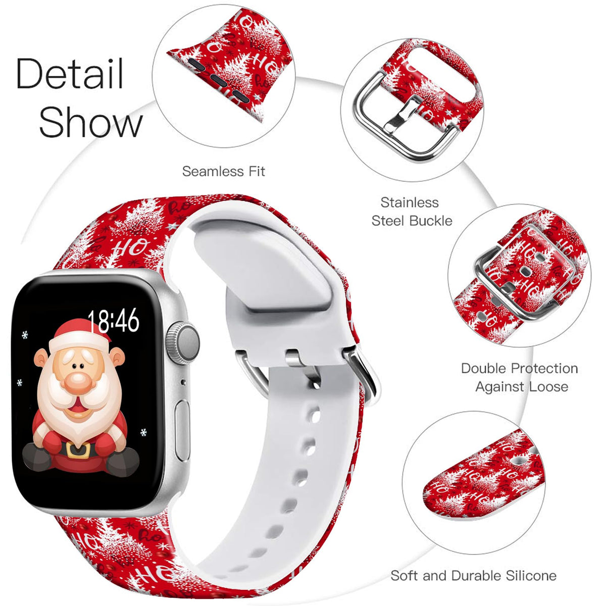 Brand: Ftfcase Holidays Christmas Floral Pattern Silicone Bands Holidays Christmas Floral Silicone Bands Compatible For Apple Watch 38Mm/40Mm/41Mm/42Mm/44Mm/45Mm/49Mm Width; Rose Gold/ Black/ Silver Iwatch 8/7/6/5/4/3/2/1, Iwatch Se All Versions. Wearing It, You Can Feel The Soft And Smooth Feeling, As If It Is Particularly Made For Your Wrist. It Is Just A Piece Of Cake To Remove The Old One And Replace With This One. You Need Not Use Any Tools To Help, Just Slide, One Action, Then Finish! Band Size 38Mm/40Mm/41Mm Bands Fits 5.1~7.8 Inch (130-180Mm) Wrist; 42Mm/44Mm/45Mm/49Mm Bands Fits 5.5~8.1 Inch (140-200Mm) Wrist; With Exquisite Craftsmanship, Precise Cut Holes To Fit Well For Most Wrist, Strictly Controlled With Its Size And Surface. 1-Year Quality Warranty 1-Year Quality Warranty, Whole Day Online Service: Any Quality Issues Happened, Refund, Replace Or Resend Is Available. We Are Willing To Help You Solve All Item Issues, Please Feel Free To Contact Us.