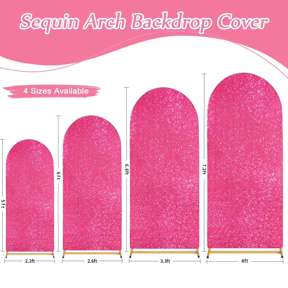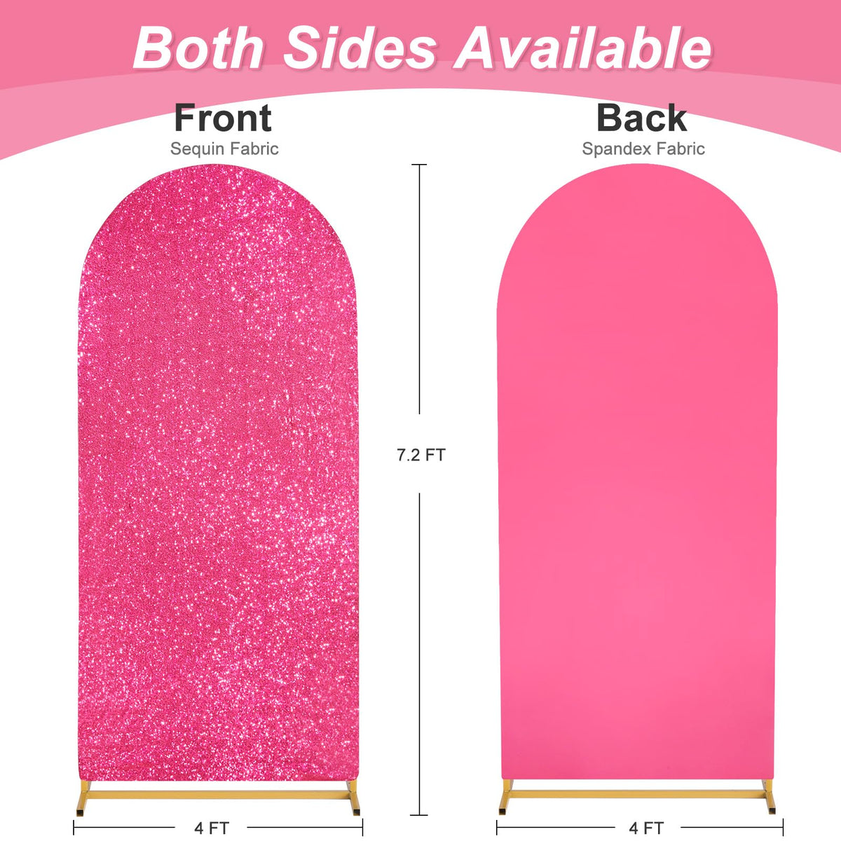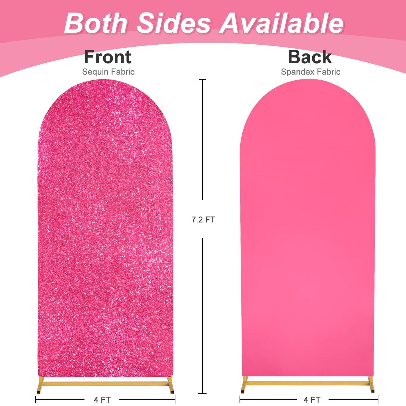 Arch Covers Package: Included 1 Piece Fuchsia Sequin Wedding Arch Cover Set With A Width Of 4Ft And A Height Of 7.2Ft. (Not Included Arch Stand) | Double Sided Usable: The Front And Back Of This Arch Backdrop Cover Are Made Of Different Materials. Sequined Fabric On The Front And The Back Is Elastic Spandex Material Fabric. Both Sides Can Be Used. | Convenient Design: The Backdrop Cover For Round-Top Arches Perfectly Contours To The Shape Of The Arch. The Bottom Of Our Wedding Arch Cover Features A Zipper Design For Better Stability And Easy Installation. | Widely Used: Our Multipurpose Wedding Arch Stand Covers Is Durable And Useful. Wedding Arch Covers Perfect For Your Party Decorations, Photo Booth Backdrops, Reception, Romantic Proposal, Or Engagement Party! | Tips For Backdrop Covers: Hand Wash Best! Do Not Bleach! Do Not Twist! Hanging Dry. If You Have Any Questions About Our Products, Please Feel Free To Contact Us. We Are Committed To Providiou With Excellent Customer Service.