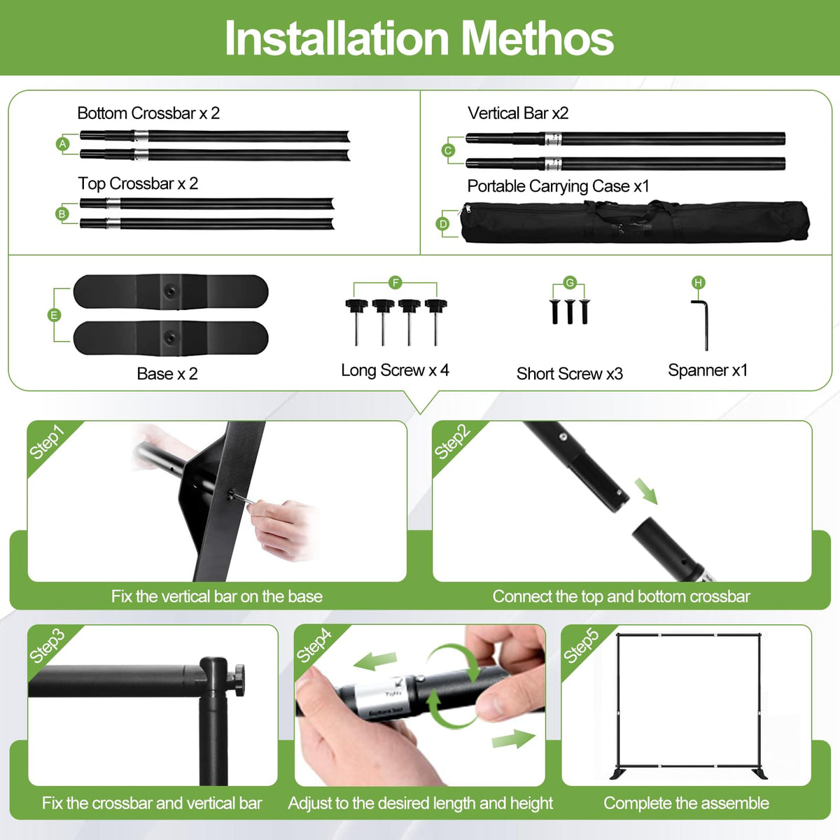 Fudesy 10X10 Ft Backdrop Banner Stand, Heavy Duty Adjustable Background Stand Kit With Carrying Bag, Step And Repeat Photography Frame Stand For Trade Show Display Photo Booth Partiesfudesy Backdrop Banner Stands Are A Perfect Display Solution When You Really Need A Professional Presentation To Show Off Your Company At Any Venue, Media Event, Tradeshow Or For Photobooth Background. A Sturdy And Lightweight Aluminum Frame Is Designed For Frequent Use. Adjustable Height And Width Allow The Heavy Duty Backdrop Stand To Fit Banners In Different Sizes. Specifications:Type: 10*10 Ft Banner Standmaterial: Aluminum Alloywidth Range: 5.6Ft-10Ft/ Height Range: 3.9Ft-10Ftthickness Of Pole: 1.2Mmload Capacity: 16 Lbspacking List: 2 X Base 2 X Top Crossbar 2 X Bottom Crossbar 2 X Vertical Bar 4 X Long Screw 3 X Short Screw 1 X Spanner 1 X Portable Carrying Case 1 X Manual(Note: Banner In Not Included)