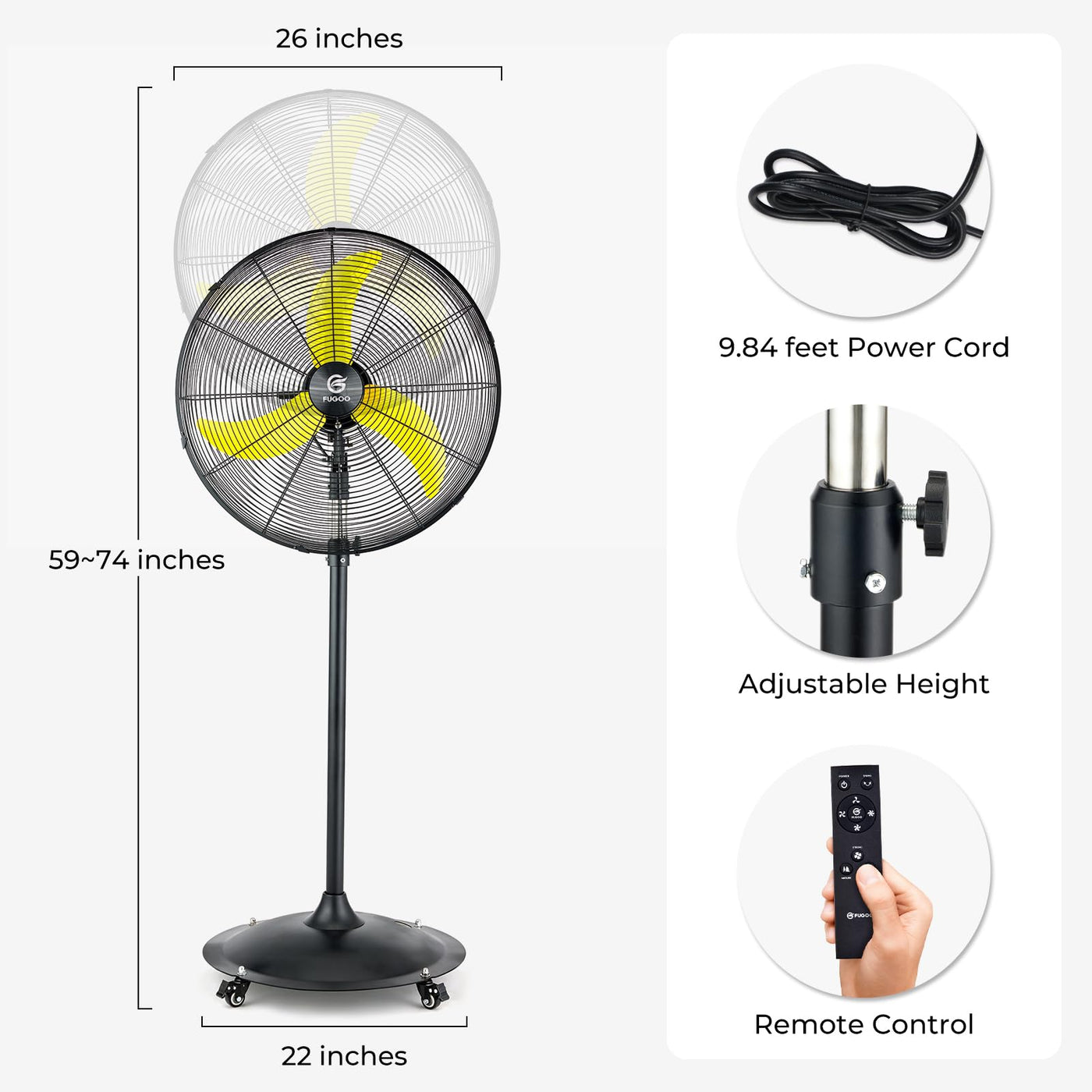 Fugoo 24 Outdoor Oscillating Pedestal Fan With Remote Control,All Sealed Bldc Motor, 4-Speed Waterproof Outdoor Fan, Heavy Dut