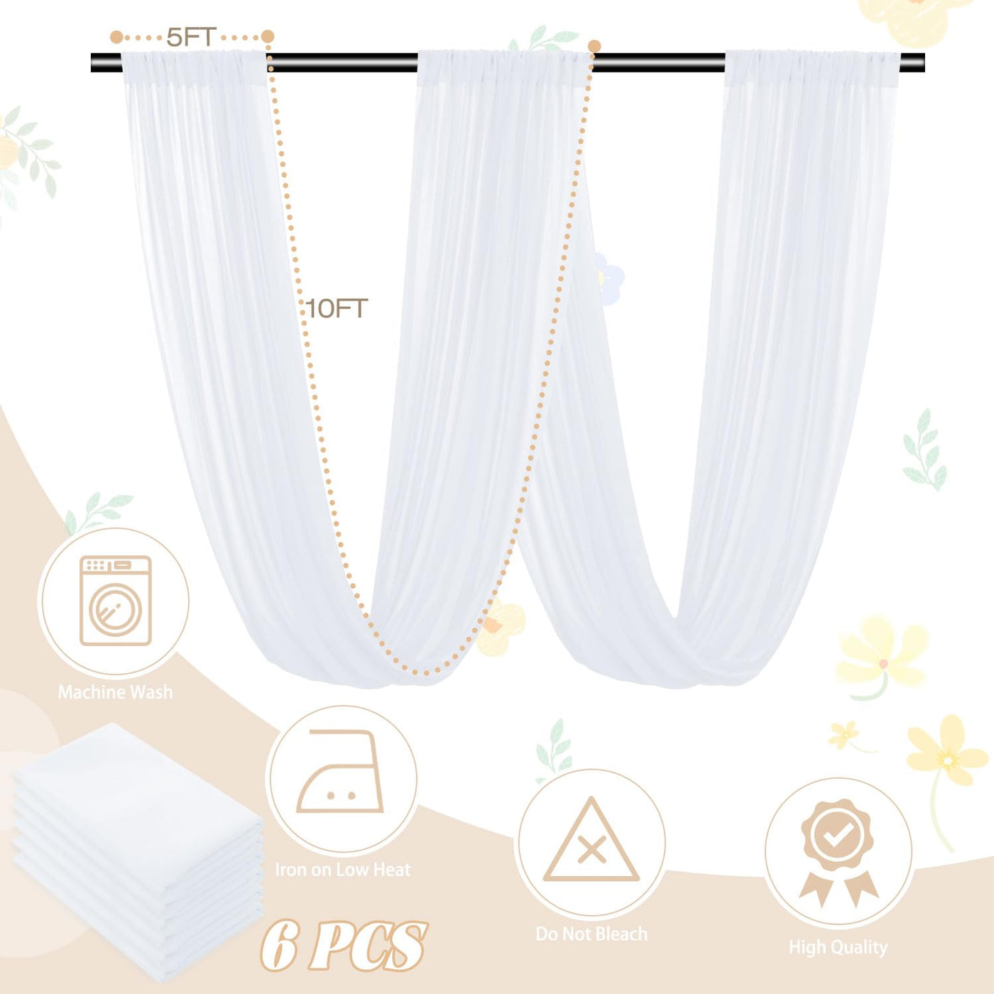 Ceiling Drapes For Parties White Chiffon Fabric Wedding Drapery Ceiling Drapes For Weddings Party Ceiling Drapes Chiffon Backdrop Curtain Sheer Voile Curtain Chiffon Curtain Panels Tent Ceiling Drapes Wedding Arch Drapes Sheer Material For Draping Chiffon Curtains Sheer Backdrop Drapes Arch Drapes For Wedding Sheer Material For Draping Wedding Decorations For Reception Arch Curtains Stage Curtain Chiffon Fabric Drapery Tulle Sheer Curtainsfuhsy Chiffon Fabric Drapes With Soft Polyester Fabric Is The Best Choice For Wedding Cremony Bridal Shwer Decorations. The Photography Backdrop Help Your Events To Create A Eye-Catching Focal Point.?1. Size & Color-- This Package Include 6 Pack 5Ft Width X 10Ft Height White Ceiling Drapery Wedding Backdrop.?2. Material-- This Tulle Backdrop Curtains Are Made Of Superior Quality Polyester Fabric. Wrinkle-Free, Washable, Reusable Silky Touch And Anti-Fading. Add Elegant, Noble, Luxurious And Charming Feeling To Your Special Events. ?3. Versatile Occasions-- Sheer Curtain Drapes Can Be Used For Indoor And Outdoor Decorations. Perfect For Wedding Ceremoy, Bridal Shower, Baby Shower, Engagement, Banquet, Reception, Birthday, Party, Graduation, Prom, Reception, Celebration, Bedroom, Living Room, Festival And So On.?4. Elegant Design-- 2023 New Trend For Weddings & Parties!! Each Panel Chiffon Blackout Curtain Has 4 Inches Rod Pocket At The Top And Bottom, Which Fits Most Of Rod Or Pole. This Ceiling Panels Chiffon Wedding Backdrop Nice For Draping Or Hanging On Arch Or Ceiling, Creating Beautiful Folds, Add Charming Look To Wedding Ceremony Decoration.?5. Easy Care-- Machine Washable In Laundry Bag Or Hand Wash In Cold Water With Mild Detergent. Do Not Bleach. Hand Wash Best. Do Not Twist. High Quality Ensures Our Sheer Drapes Curtain Sturdy And Can Be Used Repeatedly. ?6. Professional-- Fuhsy Specialize In The Production Of Household Products, Such As Party Ceiling Drapes Decorations, Wedding Arch For Ceremony, Wedding Backdrop, Chiffon Curtain, Birthday Tablecloth, Party Table Runner, Aisle Runner For Wedding Ceremony Christmas Tree Skirt Xmas Ornaments And So On.We Have Our Own Factory And Export To All Over The World. If You Have Any Customized Needs, Please Kindly Contact Us.???White Backdrop Drapes Party Ceiling Decorations Ceiling Drapes For Weddings Wedding Arch Decorations Chiffon Backdrop Curtain Wedding Arch Draping Fabric Wedding Sheer Drapes Curtain Tulle Voile Curtains Ideal For Indoor Outdoor Decorations???Ceiling Drapes For Parties White Wedding Arch Drapes 6 Panels 5Ftx10Ft Chiffon Fabric Wedding Drapery Tulle Sheer Curtains Wedding Arch Decorations For Reception Tent Drapes For Canopy Events