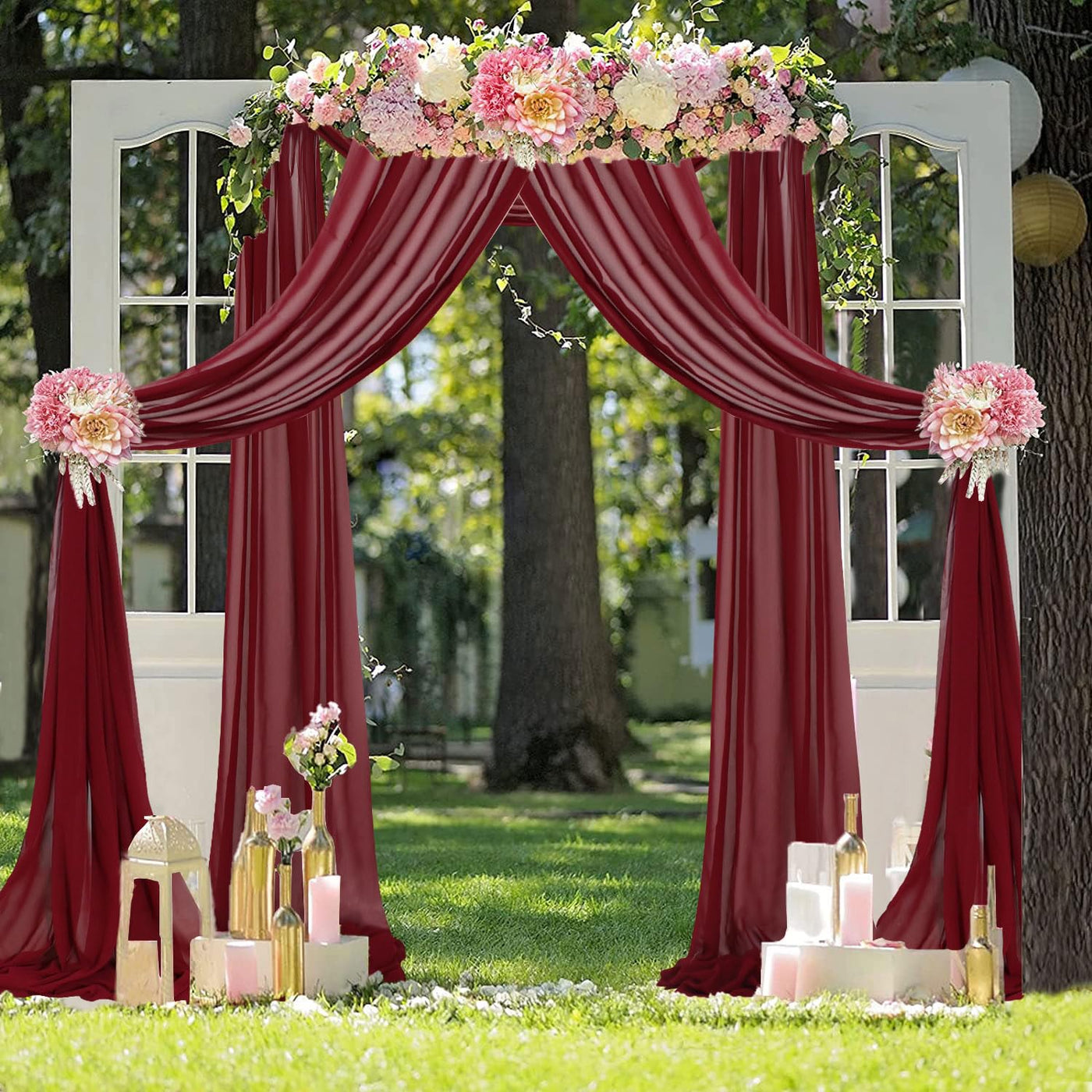 Fuhsy Wedding Arch Draping Fabric Burgundy Sheer Curtain Drapes 29'' X 20Ft 1 Panel Drapery Fabric Chiffon Backdrop Curtains Mar