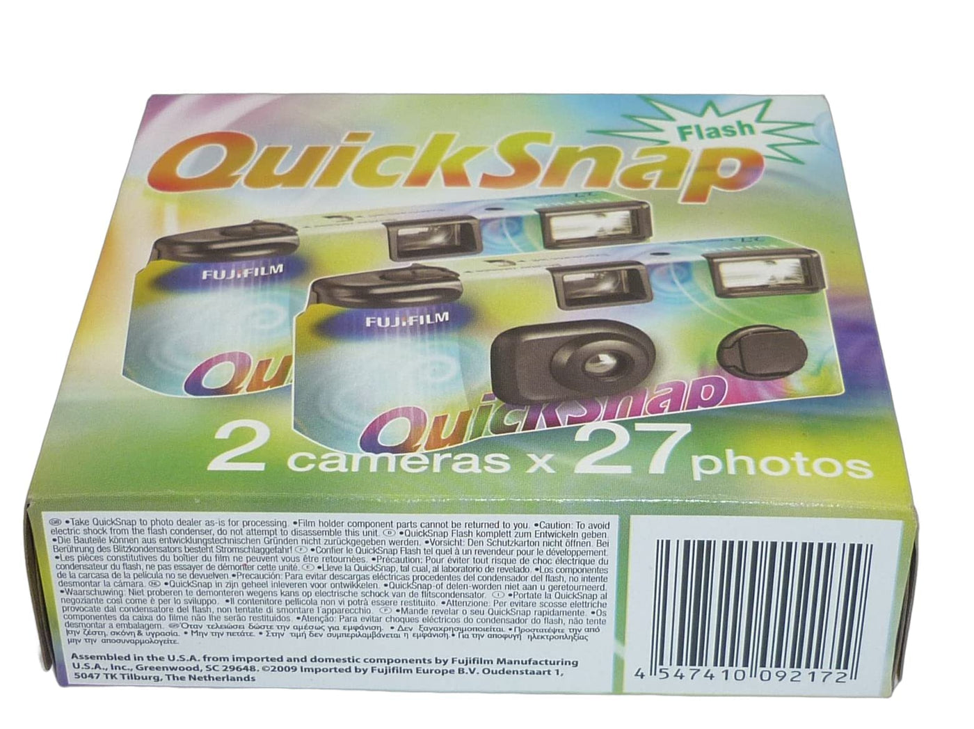 Product Descriptioneveryone Can Take Great Photos Everywhere They Go, With Fujifilm'S Quicksnap Single-Use Cameras. Beaches, Parties, Panoramic Landscapes Even Underwater There'S A Quicksnap Camera For Every Photo Occasion. The Ideal Go-Anywhere Single Use Camera That Performs Equally Well Outside, Or Indoors With Flash. A Great One To Take To Parties, Its 27 Exposures Of Fujicolor 400 Iso Film Give Truly Excellent Results, Whilst Its Powerful Built-In 3 Metre Range Flash Is Adequate For Regular Indoor Or Night-Time Shooting Situationsset Contains:Disposable Cameras