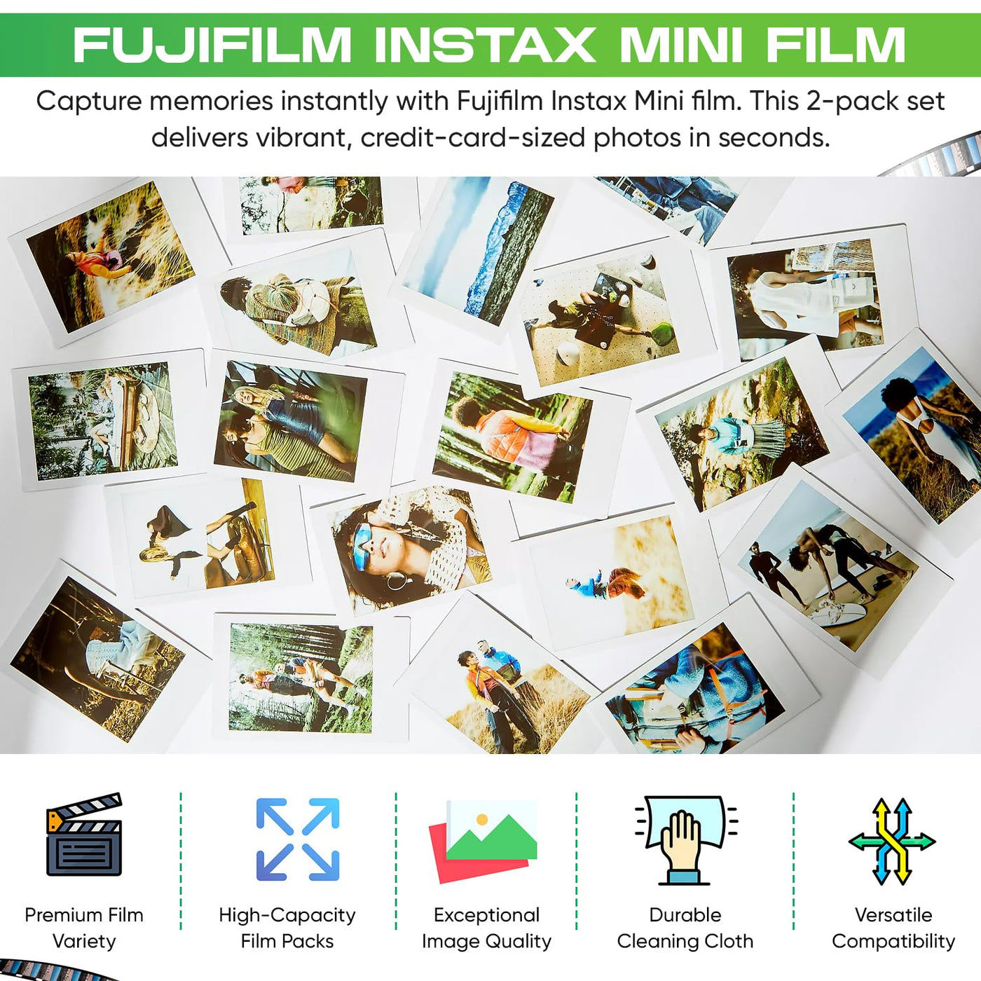 Fujifilm Instax Mini Film Two Instax Film Twin Packs 40 Exp Total, Iso 800, Compatible With Instax Mini Evo, Instax Mini 12 Fi