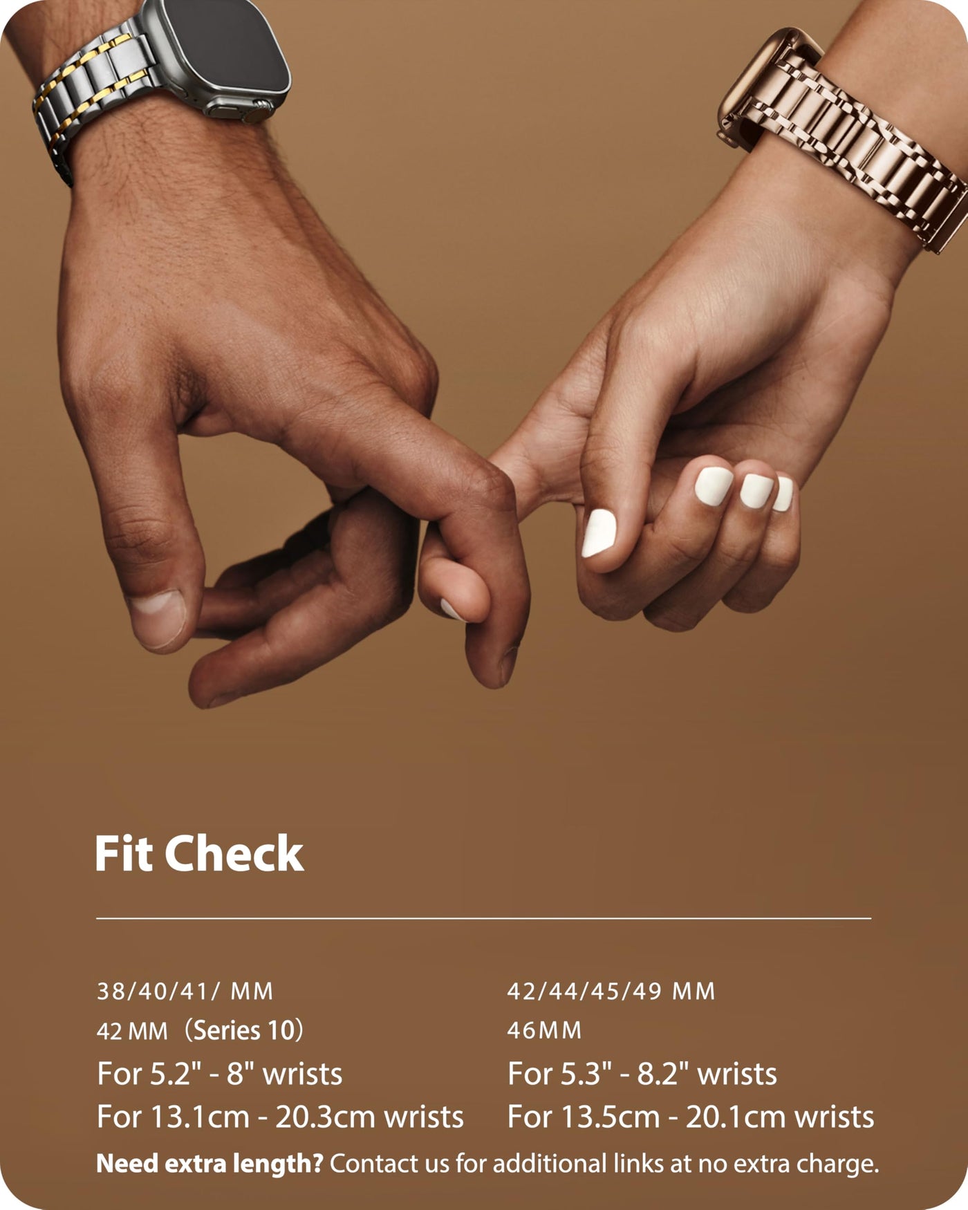 [Compatibility]: Fullmosa Solid Stainless Steel Apple Watch Strap Compatible With Apple Watch 46Mm (Series 10), And Super Easy To Install And Romove,Easy To Get Perfect Size,Suitable For Wrists 5.31''-8.15''(135Mm-207Mm). | [Gradual Slender Design]: The Five-Link Design Of Our Apple Watch Bands Features Two Glossy Watch Links In The Middle That Bring A Pop Of Shine To Your Wrist. The Band Is 24Mm Slimmed Down Toward The Deployment Clasp To 20Mm, Making It Lightweight And Sleek. Great For Male And Female! | [Easy Adjustment]: Our Apple Watch Series 10 46Mm Correa Comes With Eight Removable Links, With Four On Each Side. The Enclosed Link Removal Tool Makes Size Adjustments A Breeze. Follow The Steps In The Instruction Manual Or Video Clip To Adjust The Iwatch Bands And Get The Perfect Fit On Your Wrist. | [Durable And Stylish]: Our Metal Apple Watch Chain Wristband Is Vacuum Coated To Resist Scratches And Scuffs. The Color Won'T Rub Off Easily During Normal Daily Use. It'S A Versatile Accessory That'S Perfect For Weddings, Cocktail Parties, And Formal Business Occasions. | [What You Get]: 1*Compatible With Iwatch Bracelet,1*Tpu Case,1*Product Manual, 1*Quality Control Card,1*Link-Remove Tool.