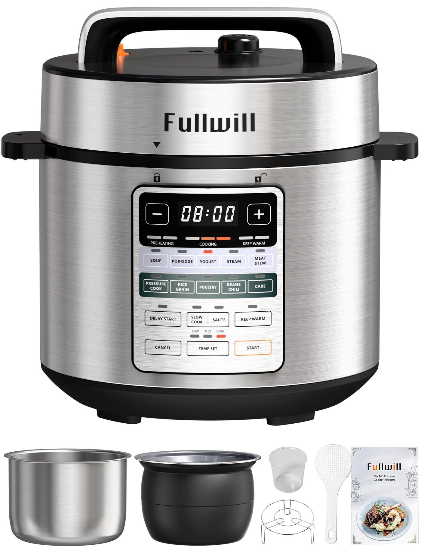 Fullwill Dual-Pot Electric Pressure Cooker 6+5QT(2025 Upgraded), 12-in-1 Multi-Cooker for Pressure Cooking, Soup, Yogurt, Stew,