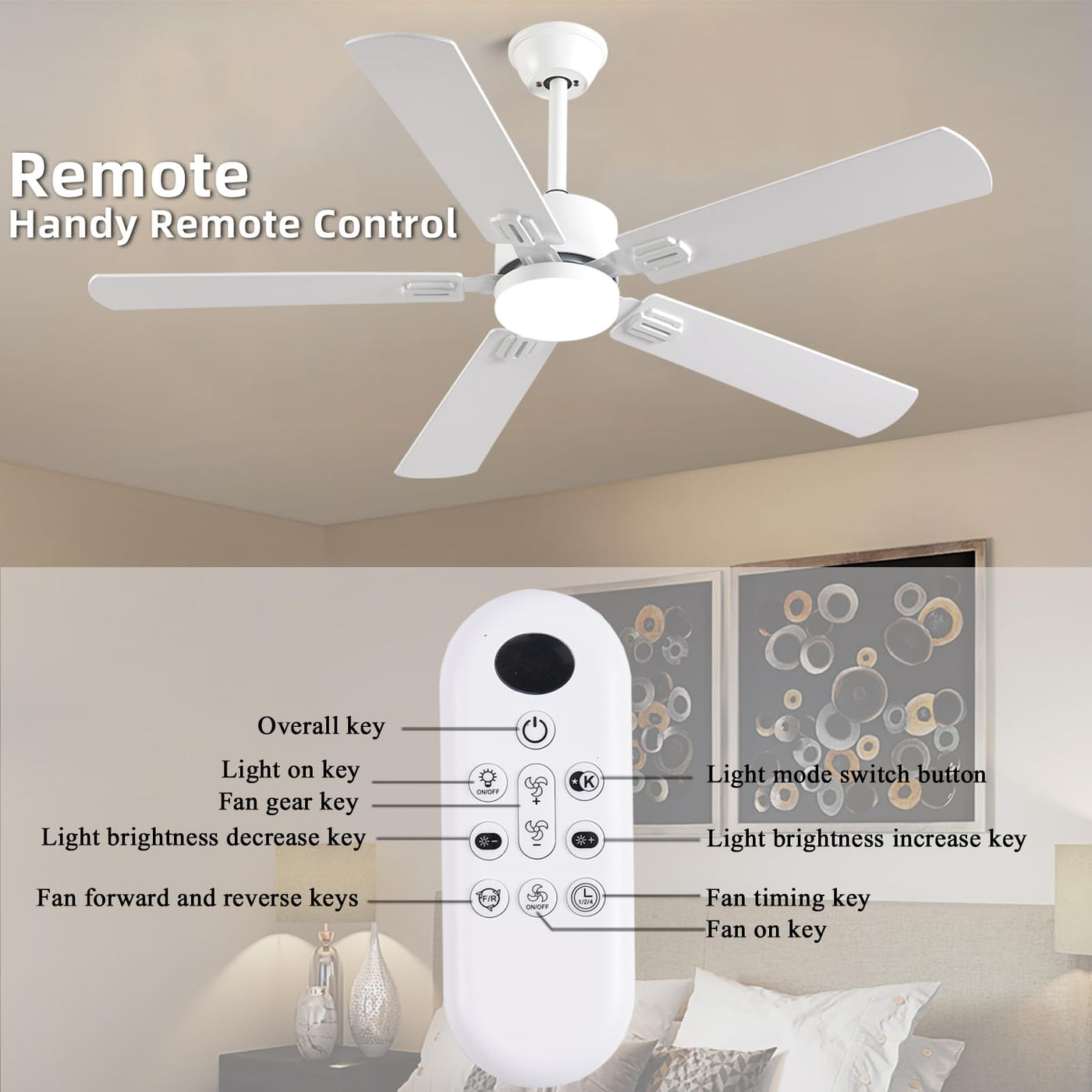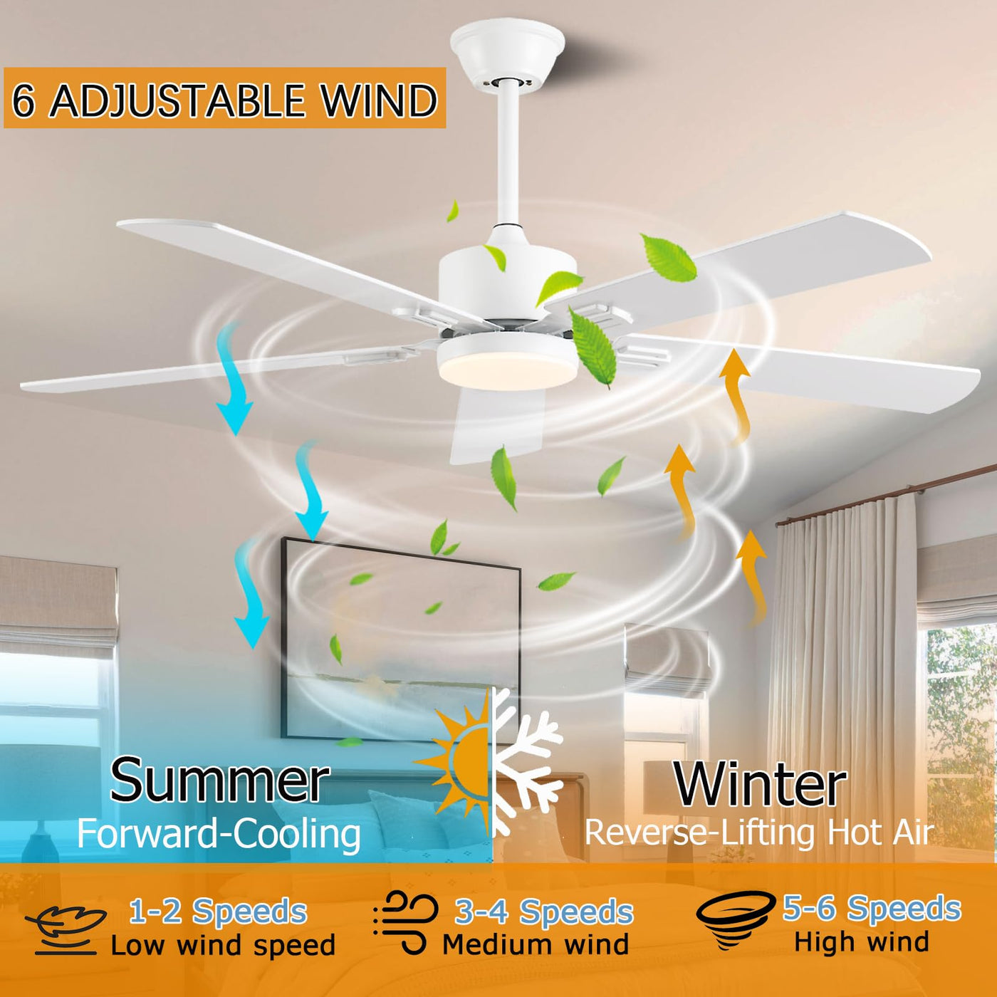 Fumltp 56Inch Modern White Ceiling Fans With Lights And Remote/App Control, Dimmable Led, Reversible Dc Motor, Noiseless, 6 Spee