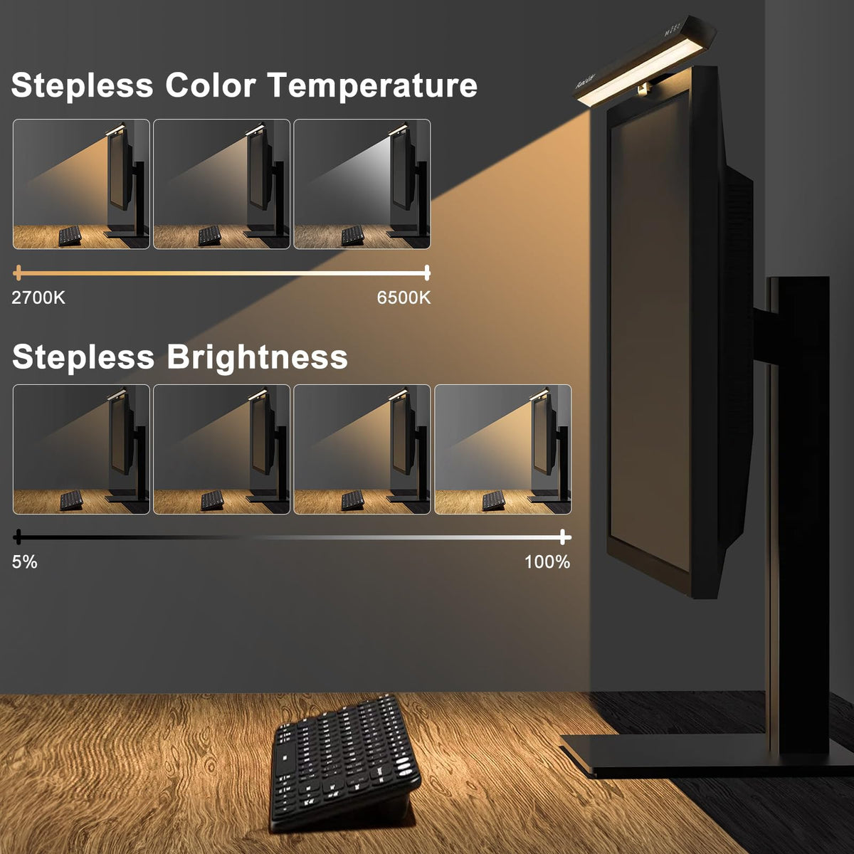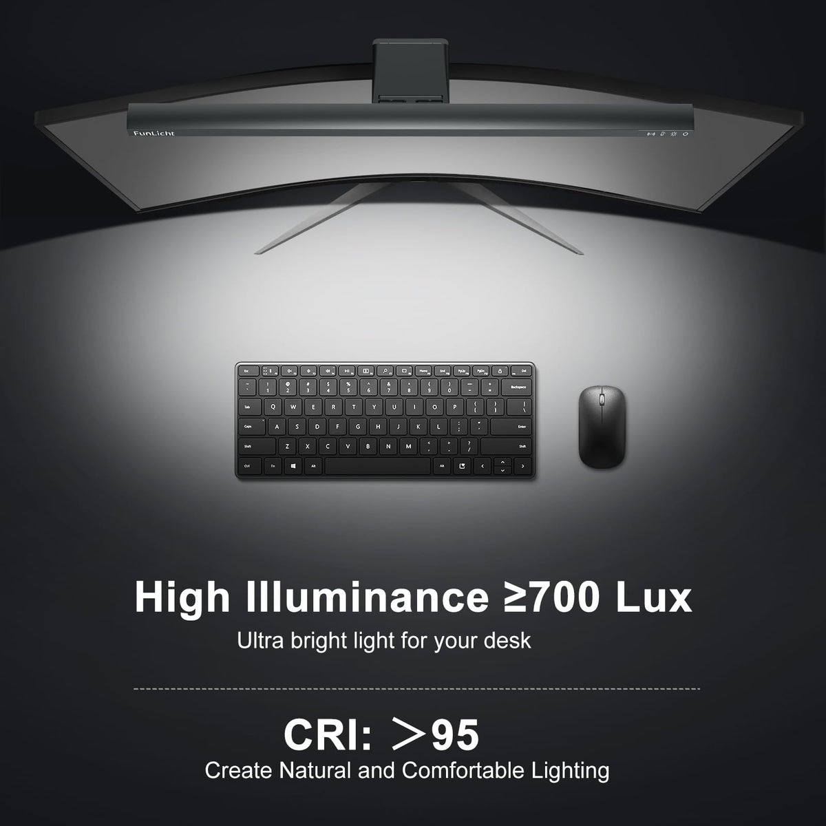 Transform Your Workspace With The Funlicht Monitor Light Bar, A Perfect Blend Of Style And Functionality. Our Unique Asymmetrical Optical Design Ensures That The Light Illuminates Only Your Desktop, Eliminating Screen Glare And Flicker. With Illuminance Levels Exceeding =700 Lux And A Color Rendering Index (Cri) Of Over 95, It Creates A Comfortable And Natural Lighting Environment That'S Perfect For Office Work, Home Study, Reading, And Gaming. Designed With Efficiency In Mind, This Light Bar Doesn'T Require A Base. It Securely Clips To The Top Of Your Computer Monitor, Saving More Than 50% Of Your Desk Space Compared To Traditional Led Desk Lamps. It'S Compatible With Monitors Ranging From 0.6 To 1.4 Inches In Thickness (15-22'' Flat Monitors). Experience Convenience With Motion Sensing Technology And Stepless Dimming. The Light Bar Automatically Turns On When Motion Is Detected Within A 0-3 Meter Range And Turns Off After Five Minutes Of Inactivity. A Sensitive Touch Sensor Allows For Effortless Adjustments Of Brightness (5-100%) And Color Temperature (2700-6500K) To Suit Your Specific Needs. Rest Assured, Our Monitor Light Has Been Certified To Meet Ce/Rohs/Fcc And Iec62778 Anti-Blue Light Standards, Ensuring Quality And Safety. Our Dedicated 24/7 Customer Service Is Always Available To Address Any Questions Or Concerns. Upgrade Your Workspace Today With The Funlicht Monitor Light Bar, And Experience A New Level Of Eye-Care Lighting And Productivity.Ideal Valentine'S Day Gift For Him Or Her