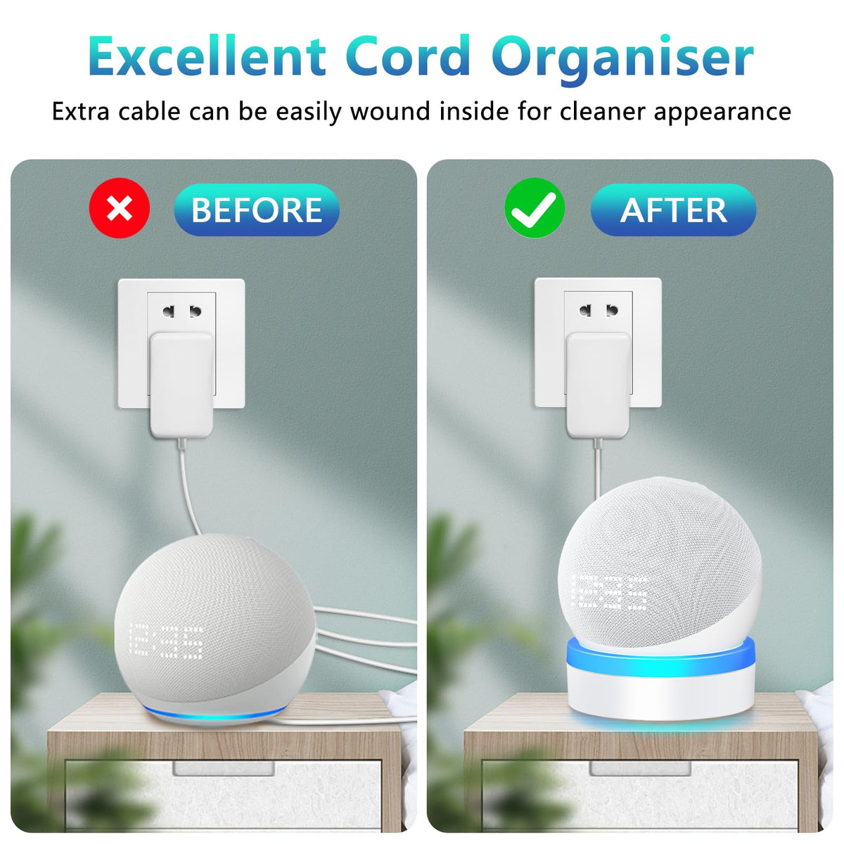 ? Smart Table Stand? The Table Base Only Fits For Echo Dot (4Th & 5Th Generations)(Device Is Not Included), But Not For Echo 4Th Gen With Premium Sound. | ?Enhance Light Ring Effect? Designed With The Translucent Light Guide And Built-In Reflective Sheet, This Dot 5Th Gen Dock Will Make Your Dot'S Notification Light More Visible, And You Can Actually See The Light From The Dot Through This Stand Farther Away. | ?Hide Messy Cord? Built-In Cord Storage Allows You To Easily Wrap The Extra Messy Cord Inside, And Keeps The Table Neat. | ?Easy To Use? No Installation, Only Need To Wind The Excess Cable Inside And Connect The Power Supply. Conveniently Move It To Anywhere And Easily Adjust The Hidden Cable Length According To Actual Usage. | ?Compact & Reliable? Made Of Premium Abs And Pc, Compact Size And High Strength, Perfect Dot 5Th Gen Dot Base Stand. The Bottom Non-Slip Silicone Pads Will Keep The Dot 5Th Gen Decorative Stand More Stably On The Table And Avoid Scratching The Table.