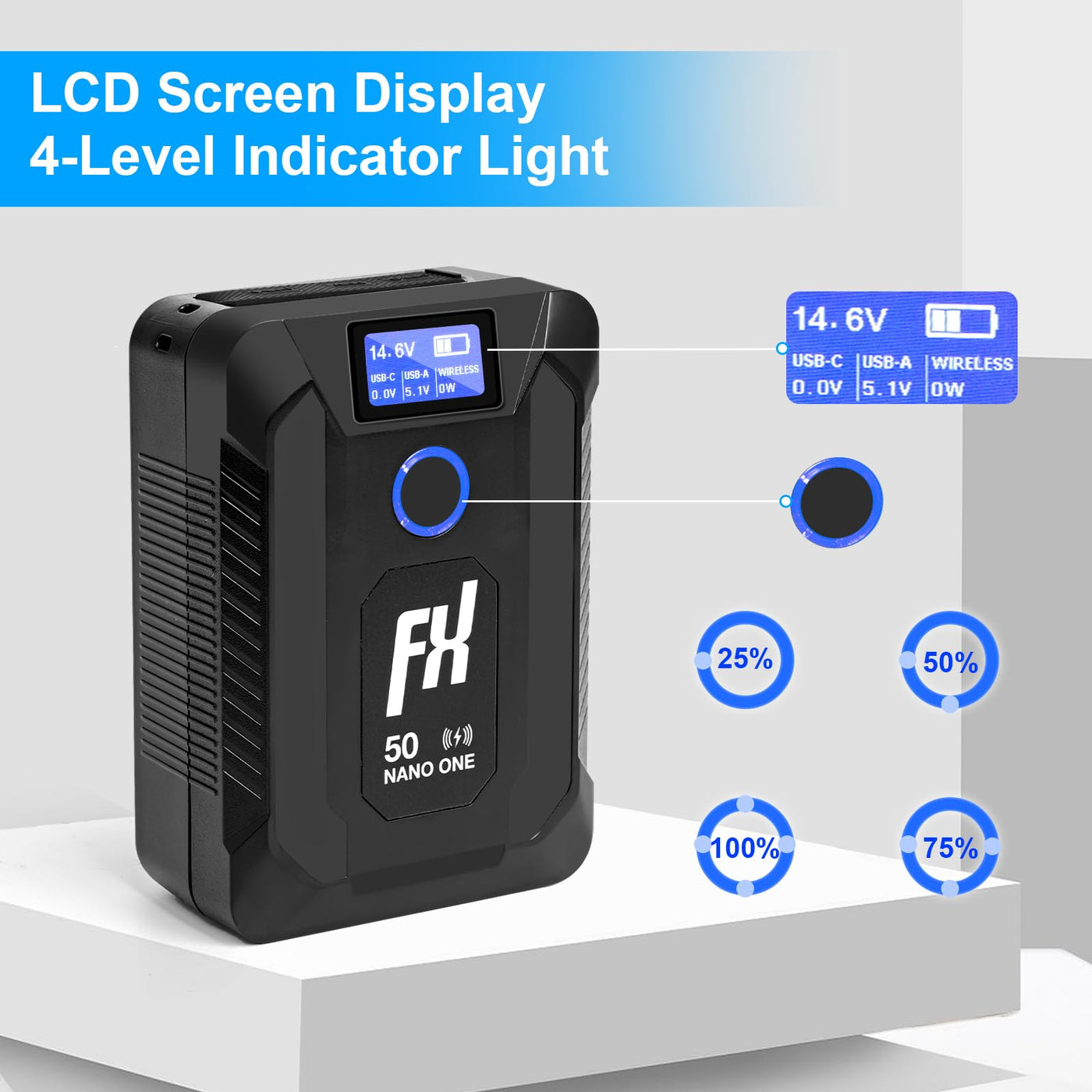 Fxlion Nano One Upgraded V Mount Battery,50Wh 14.8V 3400Mah V Lock Battery Built In Wireless Charger,With D Tap,Usb A,Usb C Port