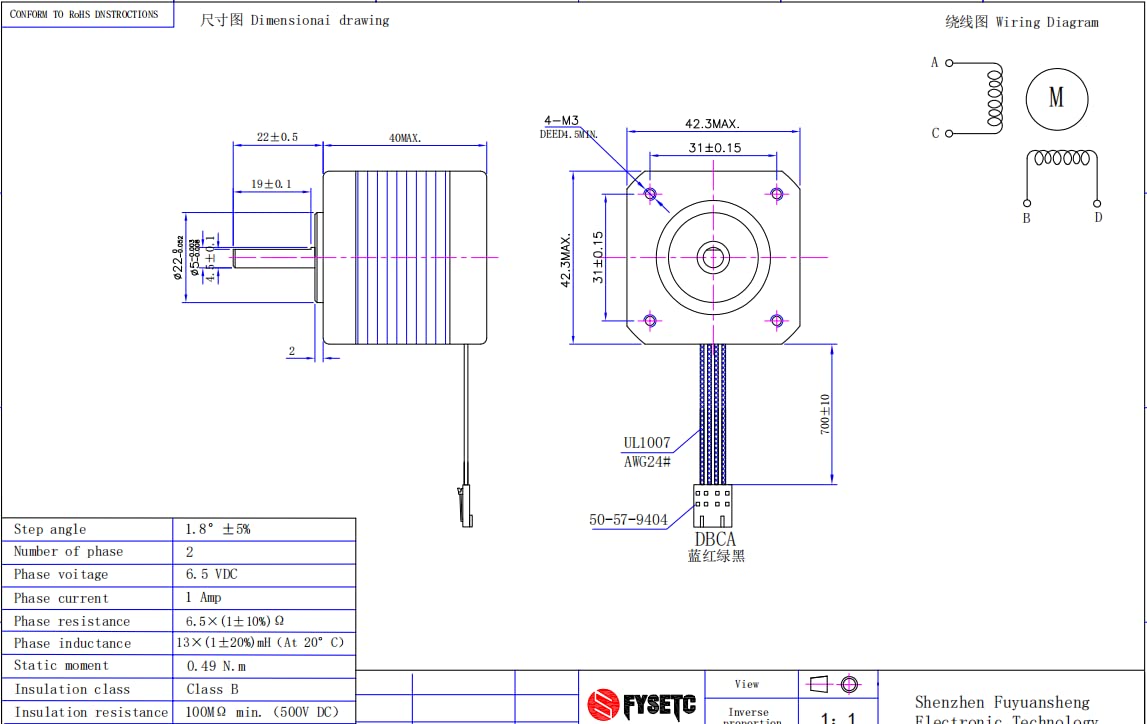 Fysetc 3D Printer Prusa I3 Mk3S+ Extruder Motor Nema17 Bipolar Motor 2 Phase 1.8 Degree 20Mm Shaft Small Motor With Integrated C