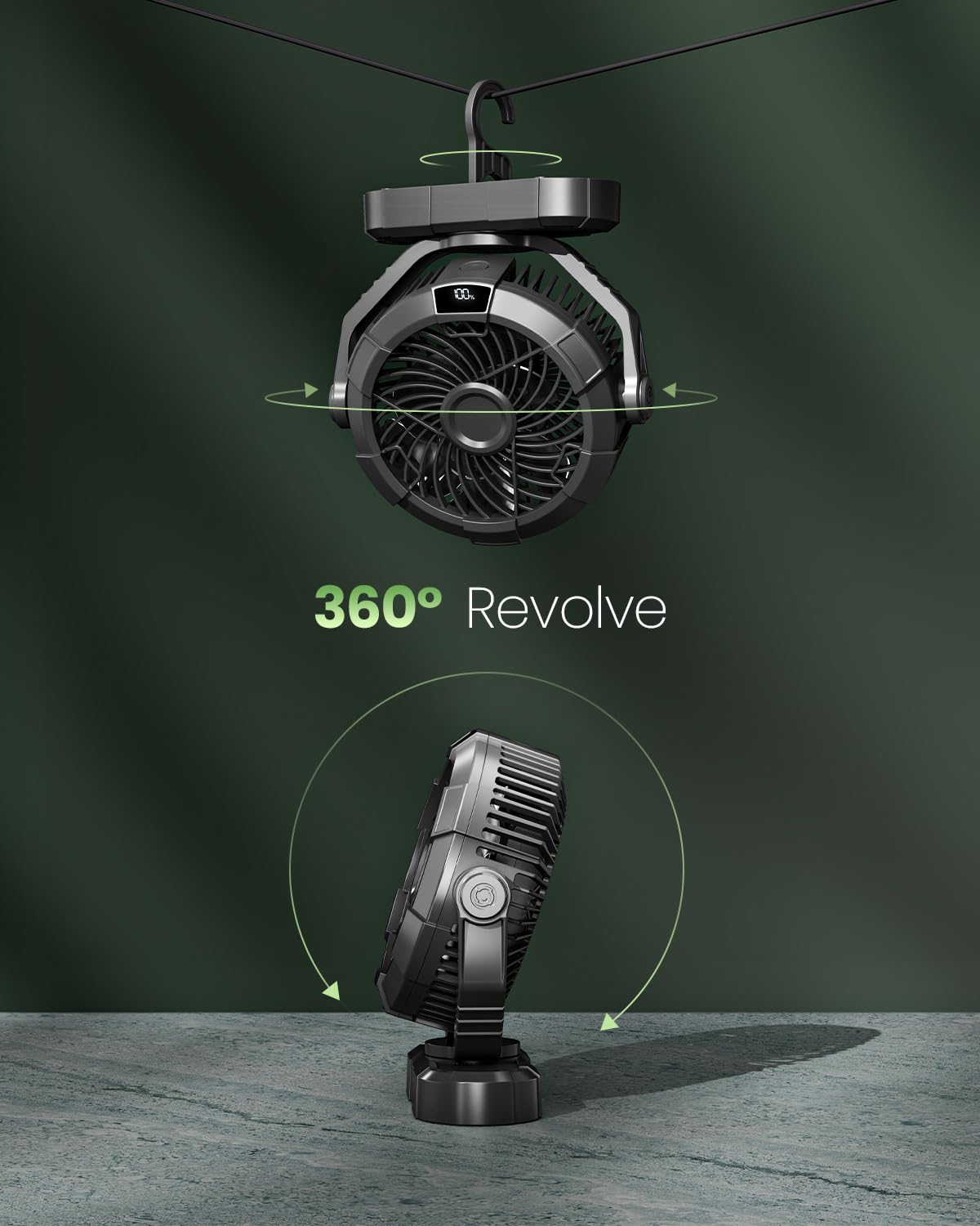 Gaiatop Portable Camping Fan With Led Lantern, 4000Mah 8 Inch Rechargeable Outdoor Tent Fan, 360 Head Rotation, 3 Speed And Quie