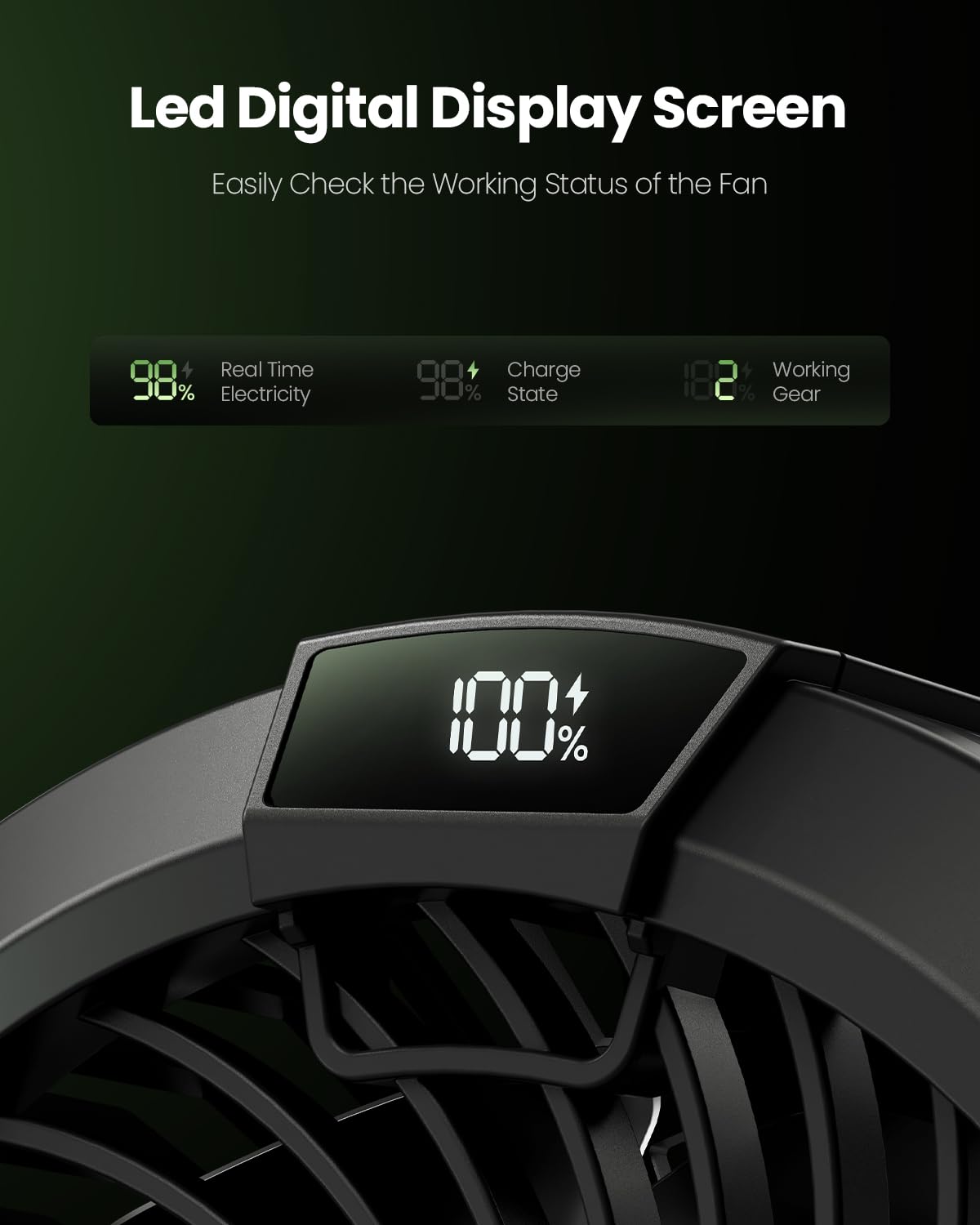 Q: How long does the battery last on the Gaiatop Portable Camping Fan?A: The Gaiatop Portable Camping Fan features a 4000 mAh rechargeable battery that provides a runtime of 4.5 to 26 hours, depending on the speed setting used.