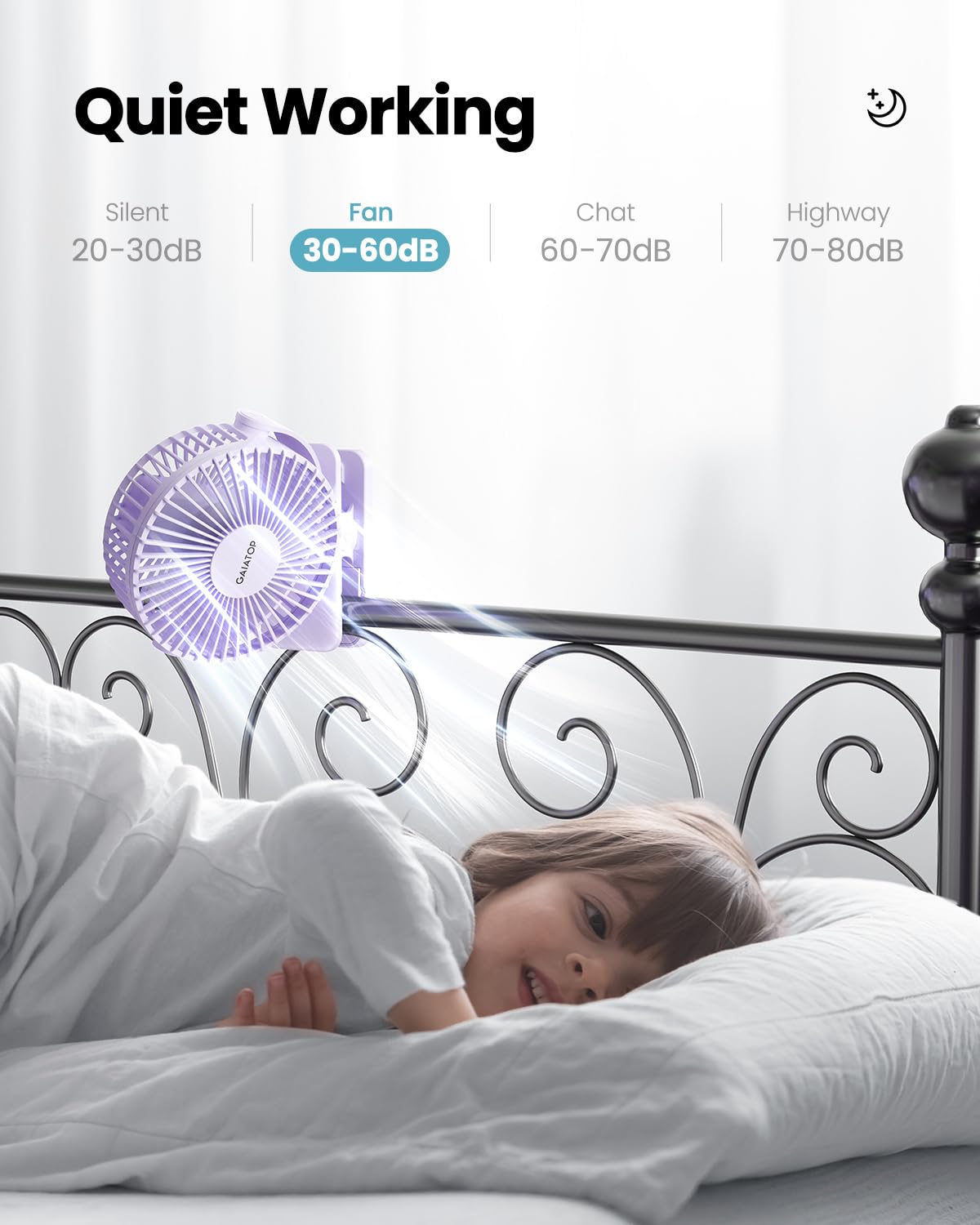 Gaiatop Portable Clip On Fan Battery Operated, Small Powerful Usb Desk Fan, 3 Speed Quiet Rechargeable Mini Table Fan, 360 Rotat