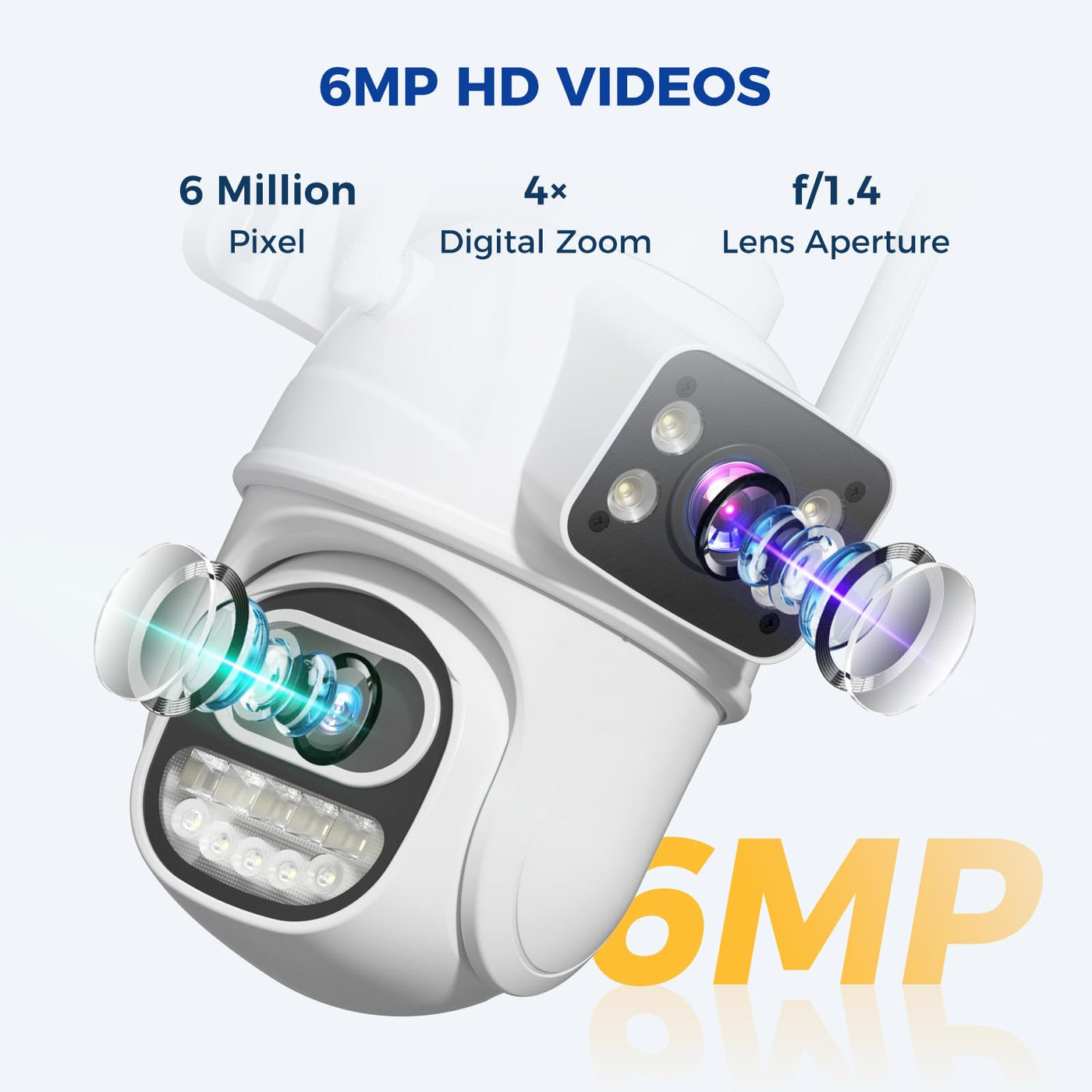 Gaiexce Wifi Security Camera Outdoor Wireless, 6Mp Dual Lens Plug In 360 Security Camera, Human Auto Tracking, Ai Motion Detecti