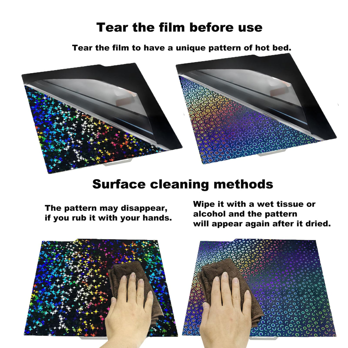 Q: What cleaning methods should I use for the build plate?A: To maintain the design and ensure quality prints, avoid using hands or oily objects on the surface. Clean the plate with a wet tissue or alcohol to refresh the pattern and maintain optimal printing conditions.