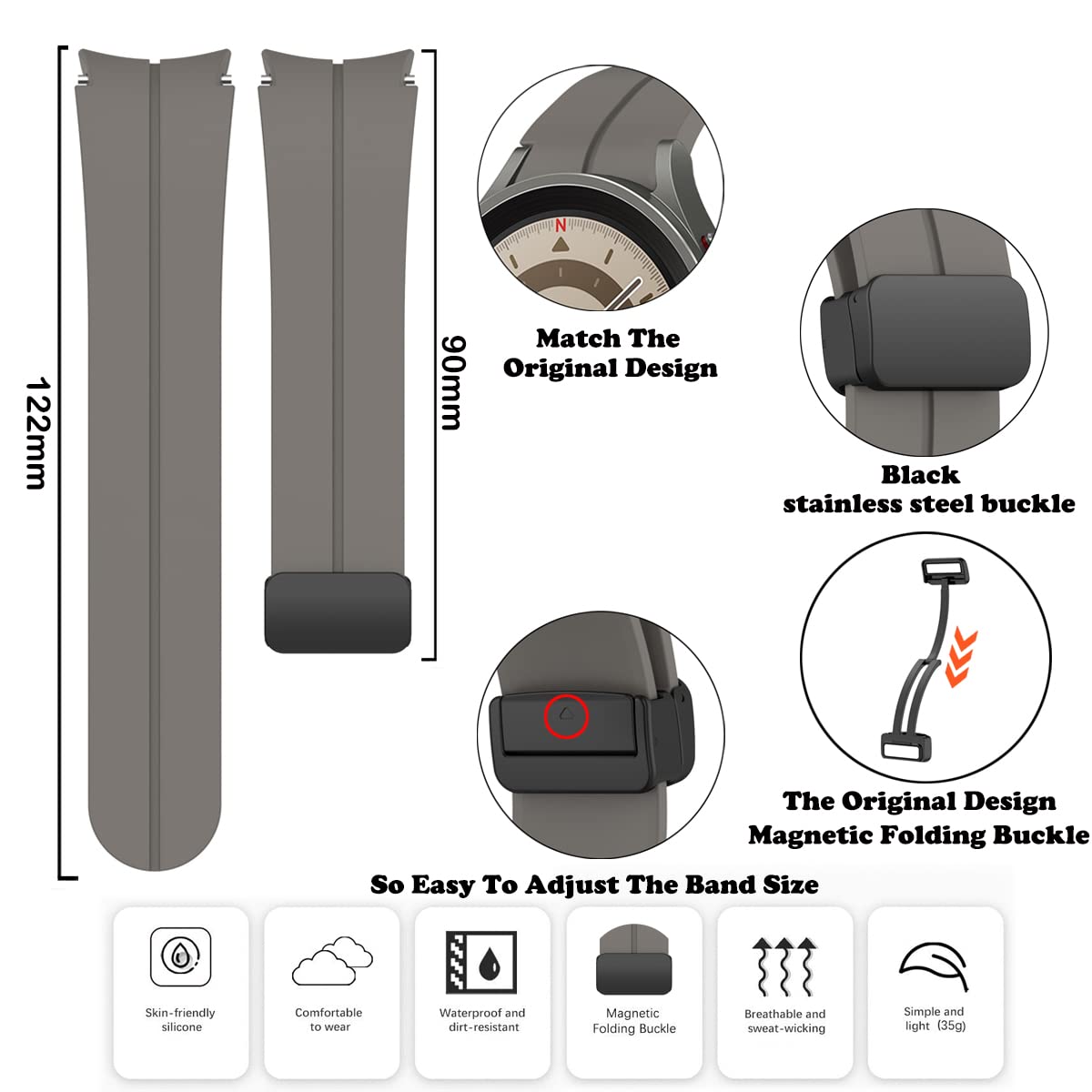 Q: What material is the Galaxy Watch 5 Pro band made from?A: The Galaxy Watch 5 Pro band is made from premium silicone, which is soft, flexible, breathable, and lightweight, making it comfortable for daily wear, workouts, and sleeping.