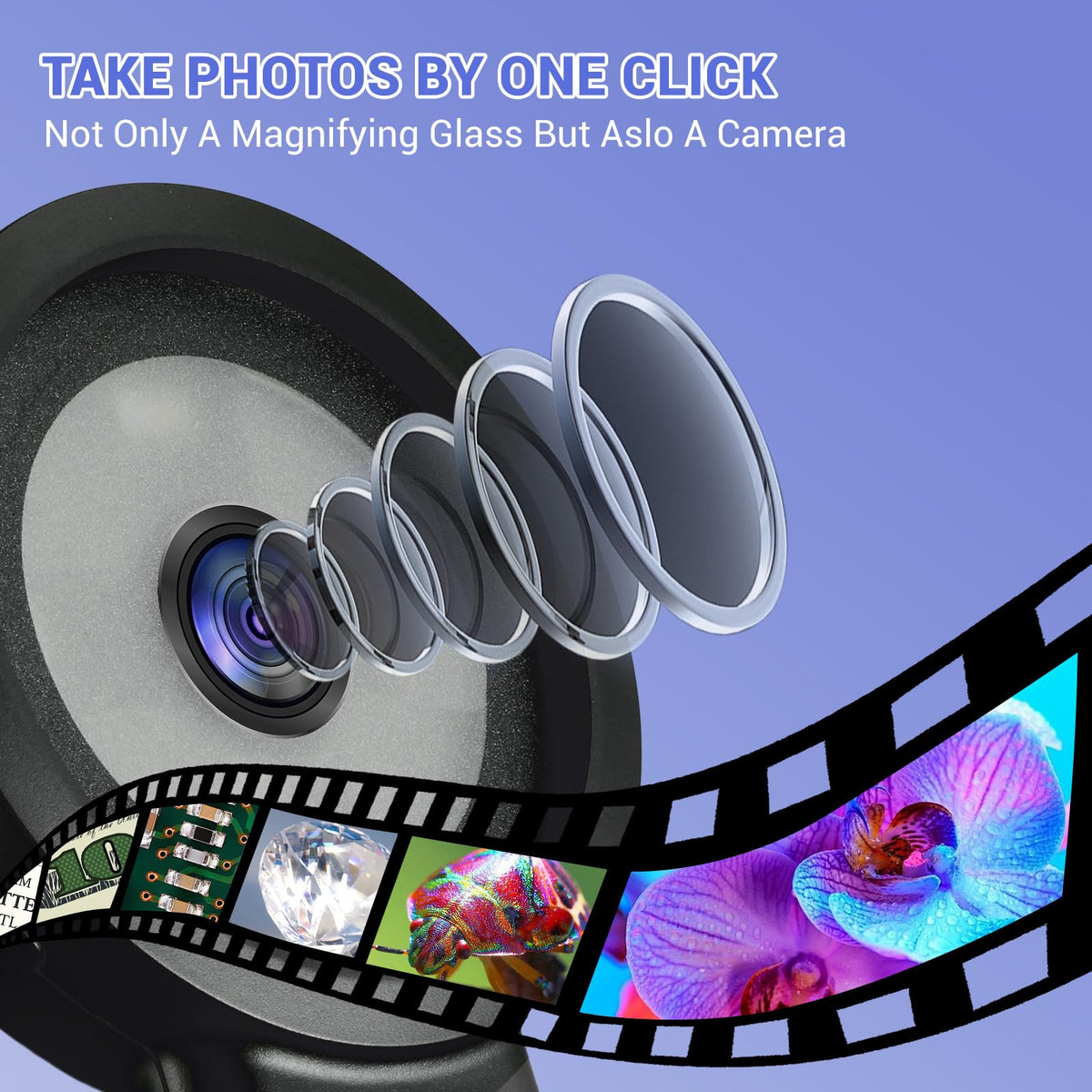 Q: What is the magnification power of the GAMKII Digital Magnifier?A: The GAMKII Digital Magnifier features a powerful 100X magnification capability, allowing you to see fine details clearly, making it ideal for examining insects, coins, stamps, and jewelry.