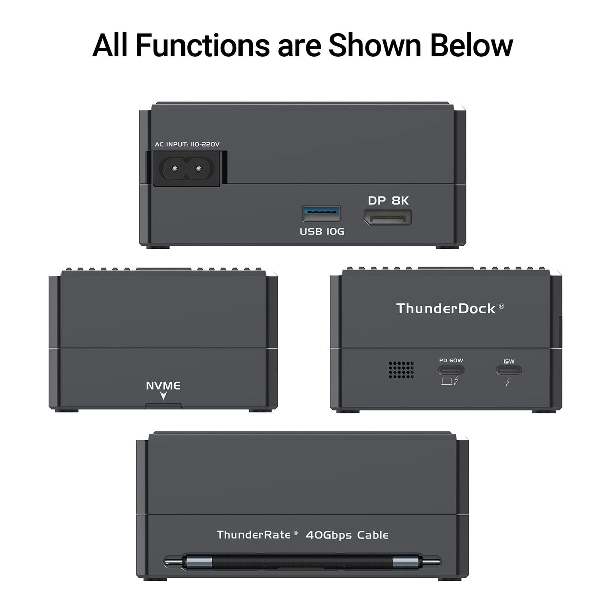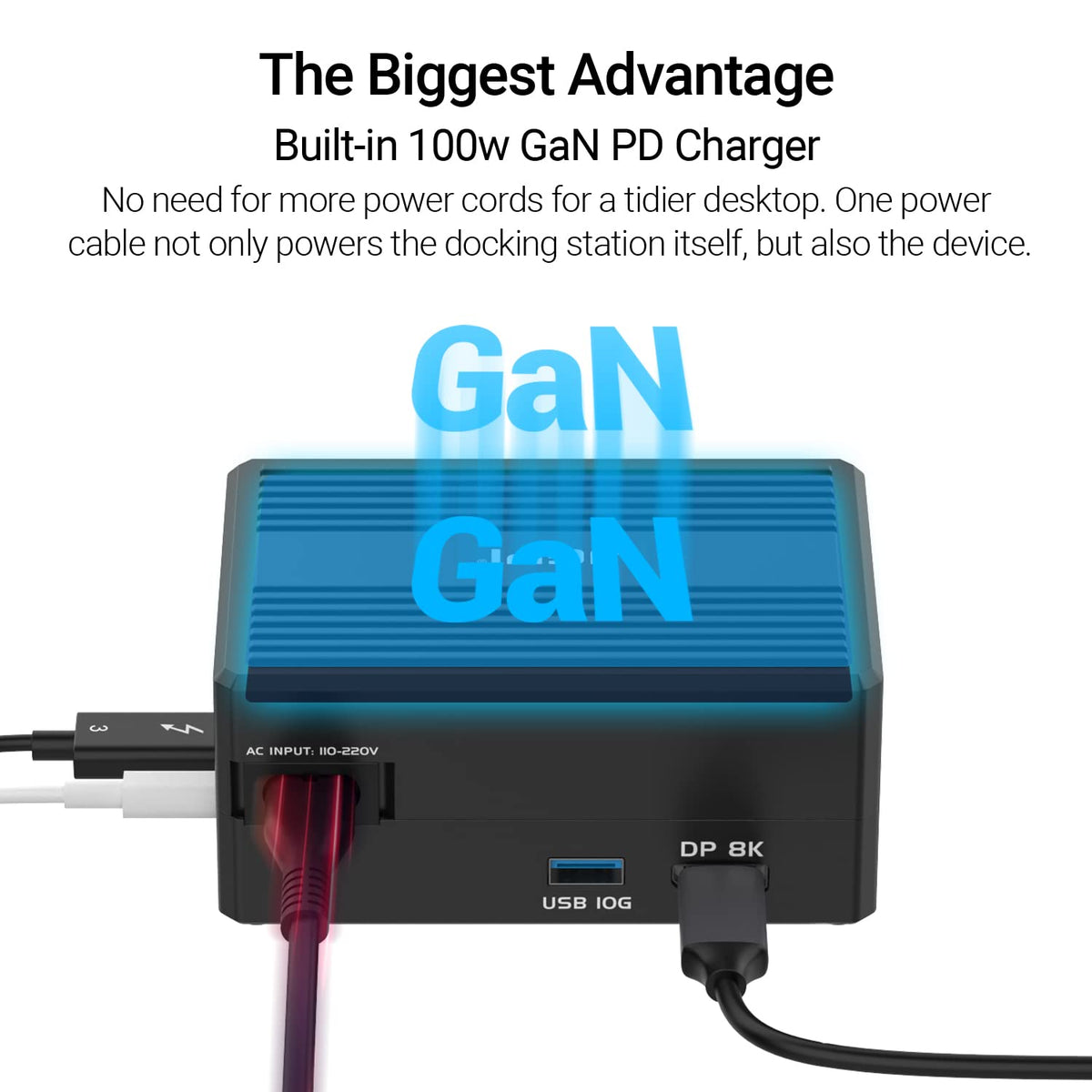 Gan Thunderbolt 3 Dock, Jeyi 8 In 1 Dual Thunderbolt 3 Docking Station With Nvme M.2 Expansion, 8K Dp,60W Pd, Usb A 10Gbps Thu