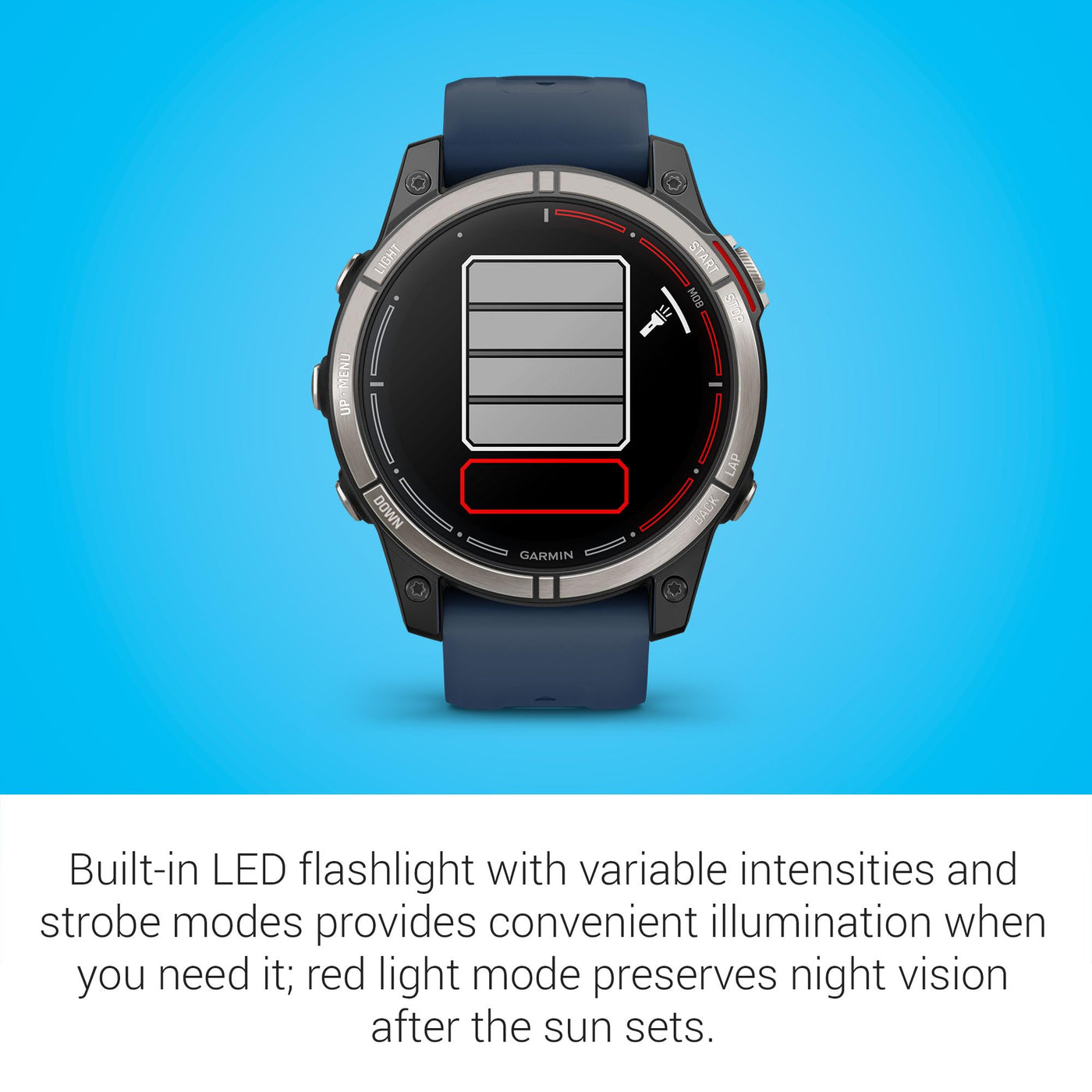 Plot Your Paradise On And Off The Water With The Quatix 7 Pro Smartwatch. This High-Performance Smartwatch Designed For Your Marine Lifestyle Features A Stunning Amoled Display With A Scratch-Resistant Sapphire Lens. Explore Remote Destinations With Up To 16 Days Of Battery Life In Smartwatch Mode. The Bright Led Flashlight Provides Convenient Illumination When You Need It. Track Your Favorite Watersport Activities, And Control Force Trolling Motors From Your Wrist. Meet Any Challenge At The Helm And Beyond With Advanced Training Insight And 24/7 Health Tracking Features, Such As Advanced Sleep Tracking, Hrv Status And More (Data Presented Is Intended To Be A Close Estimation Of Metrics Tracked). Enjoy Preloaded Topoactive Maps To Keep Your Land-Based Explorations On Track. Navigate From Your Wrist With Optional Bluechart G3 Saltwater Charts And Lakev G3 Inland Maps. Gain Superior Positioning Accuracy Offshore And Nearshore While Optimizing Battery Life, Thanks To Multi-Band Gps With Satiq Technology.