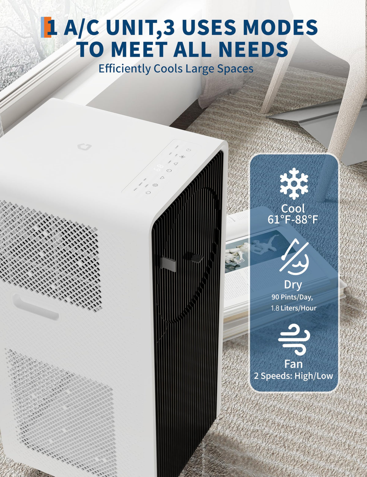 [Powerful And Efficient Cooling] - This Garveetech Portable Air Conditioner Delivers Strong Cooling Performance With 14,000 Btu (Ashrae) / 10,000 Btu (Sacc), Effectively Cooling Spaces Between 225 And 300 Sq Ft Within A Comfortable Temperature Range Of 61? To 88?. It Features Up To 30