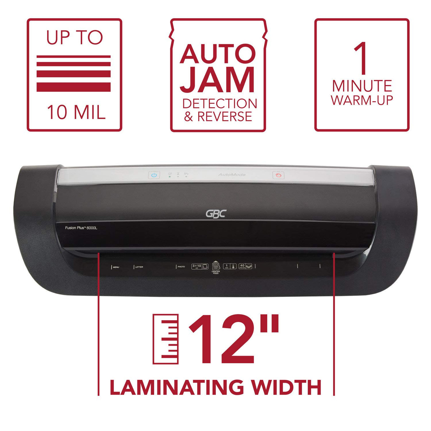 Gbc Thermal Laminator Machine, Fusion 6000L, 12 Inch, 1 Min Warm-Up, 3-10 Mil, With 50 Ezuse Laminating Pouches For Home, Office