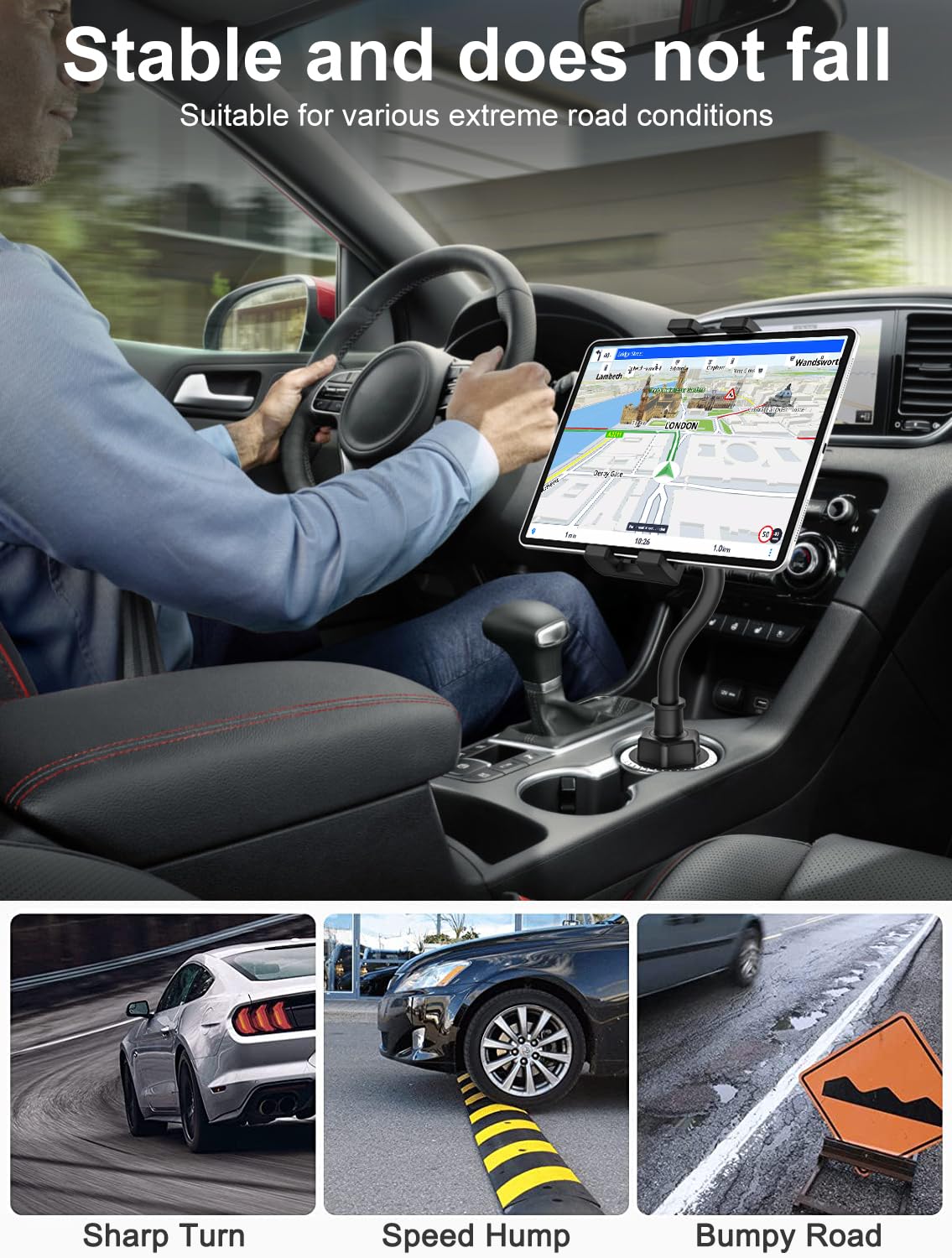 Gdzn Cup Car Tablet Holder For Car, Car Cup Holder Tablet Mount, Universal Adjustable Gooseneck Cup Holder Tablet Cradle With 360 Rotation For 4-11'' Tablet Ipad Pro,Galaxy Tabs, Z Fold, Fire, Phone