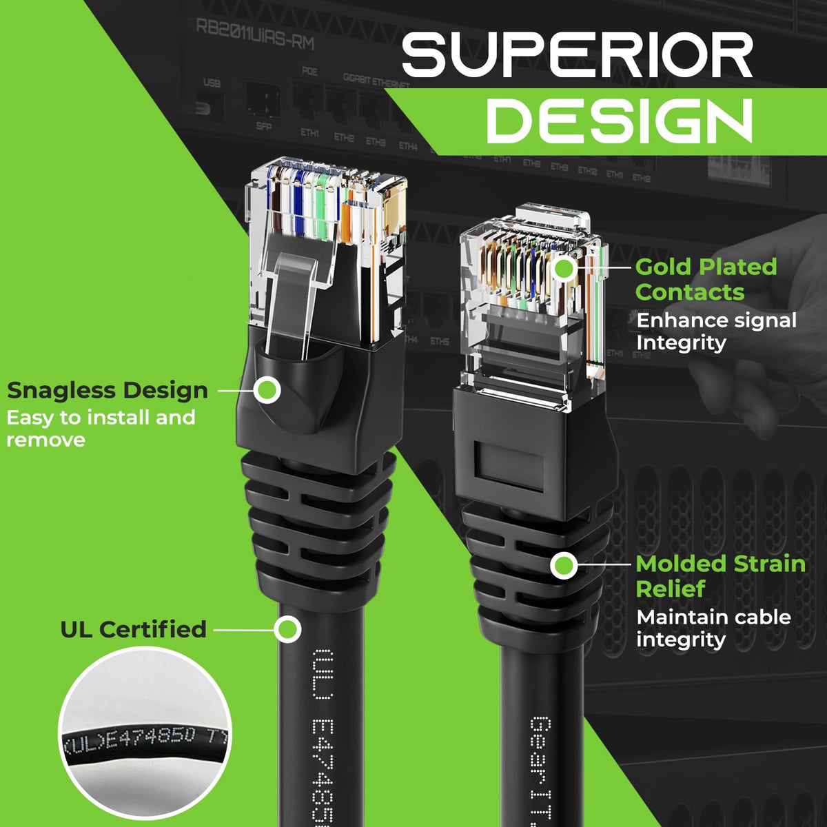 Future-Proof Your Network For 10-Gigabit Ethernet With Gearit Cat 6 Network Patch Cables. With Gearit Cat6 Cables, Your Network Will Be Ready For The Future And Will Still Be Working When You Get There. Industry Standard Ansi/Tia-568-C.2, Cat 6, Etc. Verified Cables With High Compliance Rj45 (8P8C) Snag-Less Connectors And Molded Strain Relief Boots. Bandwidth Rating Of Up To 550 Mhz Ensures Compatibility With Ethernet 10Base-T, 100Base-Tx(Fast Ethernet), 1000Base-T (Gigabit Ethernet), 10Gbase-T (10-Gigabit Ethernet), Peer-To-Peer, And Any Other Applications That Utilize Networking Cables Including Telephony, Home Automation And Long Distance Video Transfer Technologies Like Hmdi Over Ethernet. Use To Connect Any Network Able Device With Rj45 Connection Including Pc'S, Laptops, Servers, Printers, Nas Storage Devices, Voip, Power Over Ethernet (Poe), Dvr'S, Etc. Utp - Unshielded Twisted Pairs -The Effectiveness Of Utp Cable Design Which Uses Twisted Pairs Without The Need For Additional Shielding Have Allowed This Type Of Cabling To Be The Most Cost Effective Solution Available For Any Type Of Advanced Local Area Network Connection And Made It An Industry Standard For A Wide Variety Of Applications. Specifications Cable Type: Cat6, Utp Conductor Material(More...)