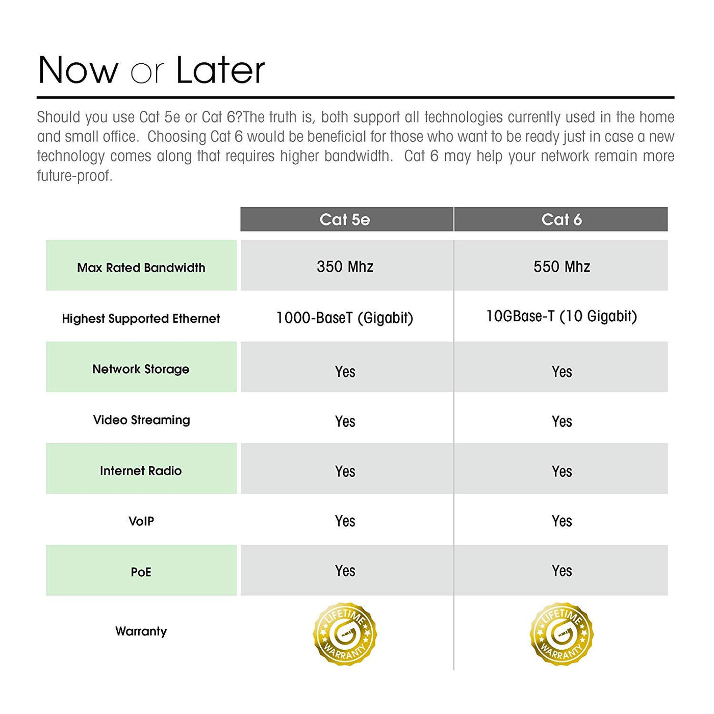 Future-Proof Your Network For 10-Gigabit Ethernet With Gearit Cat 6 Network Patch Cables. With Gearit Cat6 Cables, Your Network Will Be Ready For The Future And Will Still Be Working When You Get There.Industry Standard Ansi/Tia-568-C.2, Cat 6, Etl Verified Cables With High Compliance Rj45 (8P8C) Snag-Less Connectors And Molded Strain Relief Boots. Bandwidth Rating Of Up To 550 Mhz Ensures Compatibility With Ethernet 10Base-T, 100Base-Tx(Fast Ethernet), 1000Base-T (Gigabit Ethernet), 10Gbase-T (10-Gigabit Ethernet), Peer-To-Peer, And Any Other Applications That Utilize Networking Cables Including Telephony, Home Automation And Long Distance Video Transfer Technologies Like Hmdi Over Ethernet. Use To Connect Any Networkable Device With Rj45 Connection Including Pc'S, Laptops, Servers, Printers, Nas Storage Devices, Voip, Power Over Ethernet (Poe